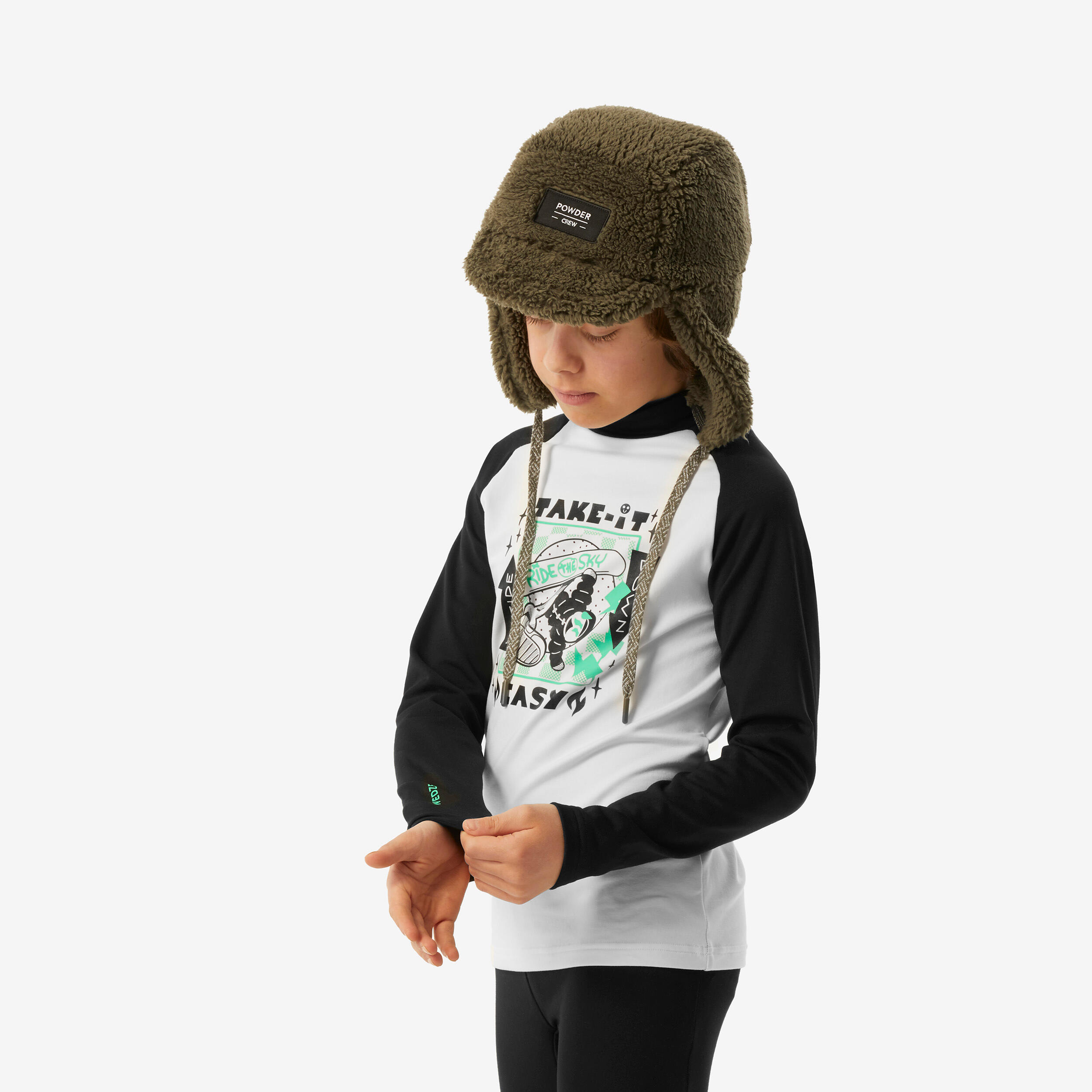 Kids’ thermal ski base layer, BL 500 - Black/White Pattern