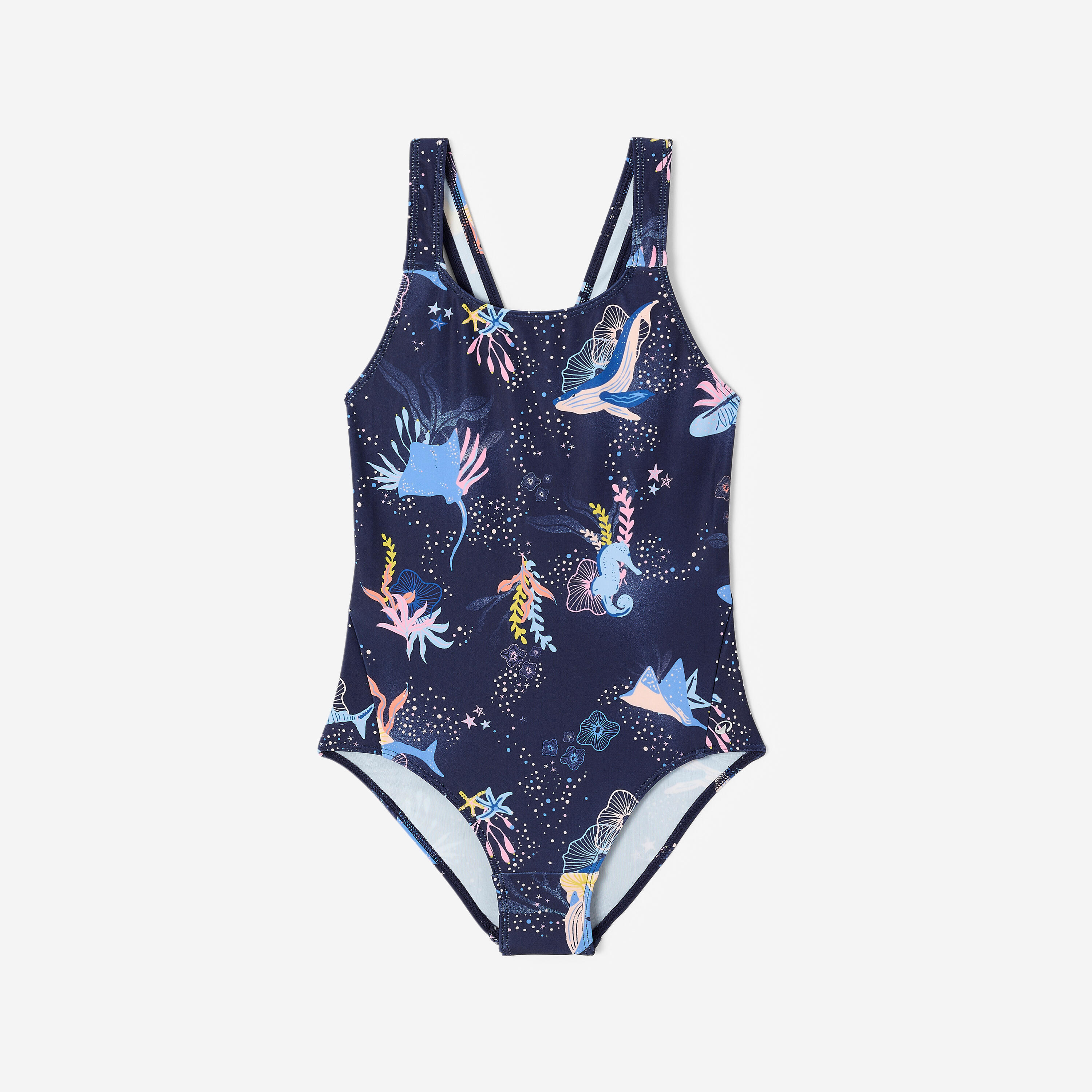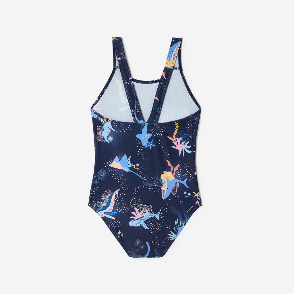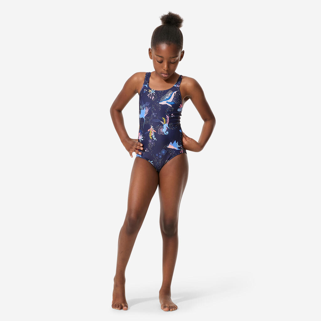 Young girls’ 1-piece swimsuit, Vega ocean blue
