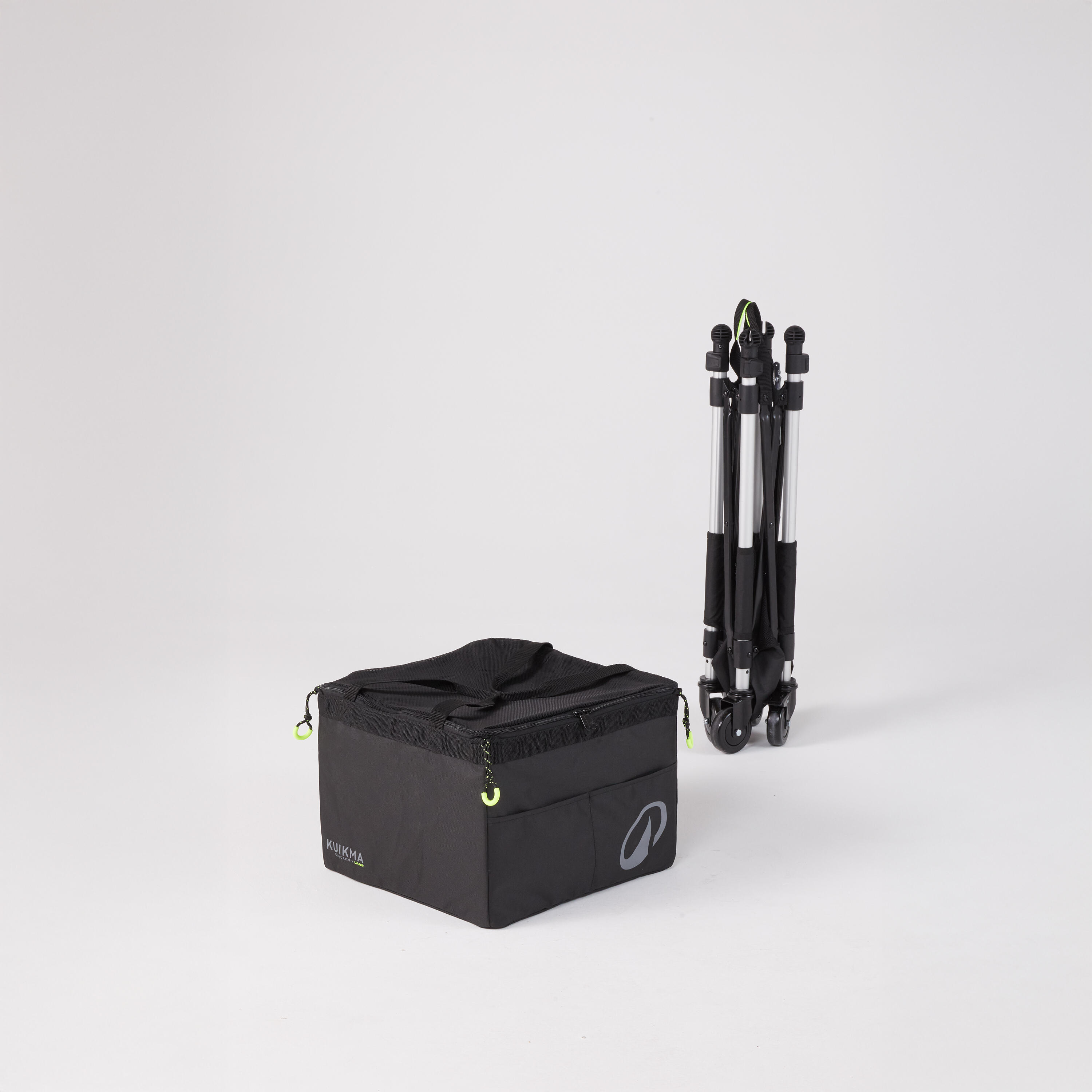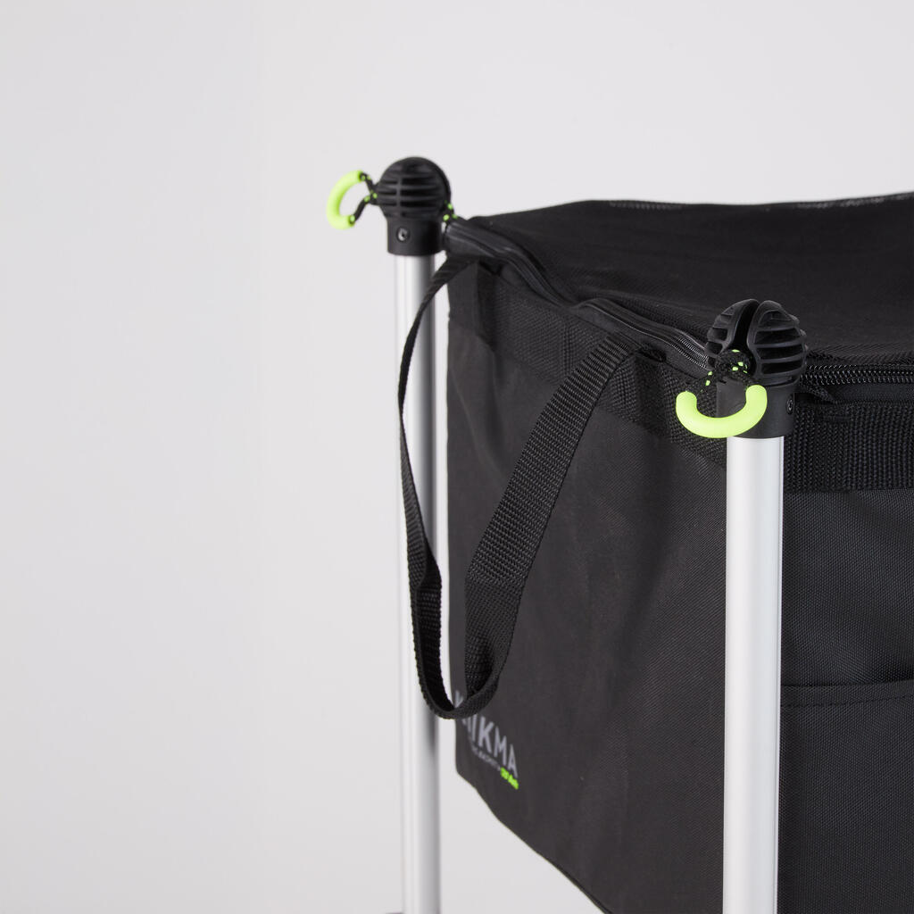 This stable cart folds down and can hold up to 120 balls and other accessories.