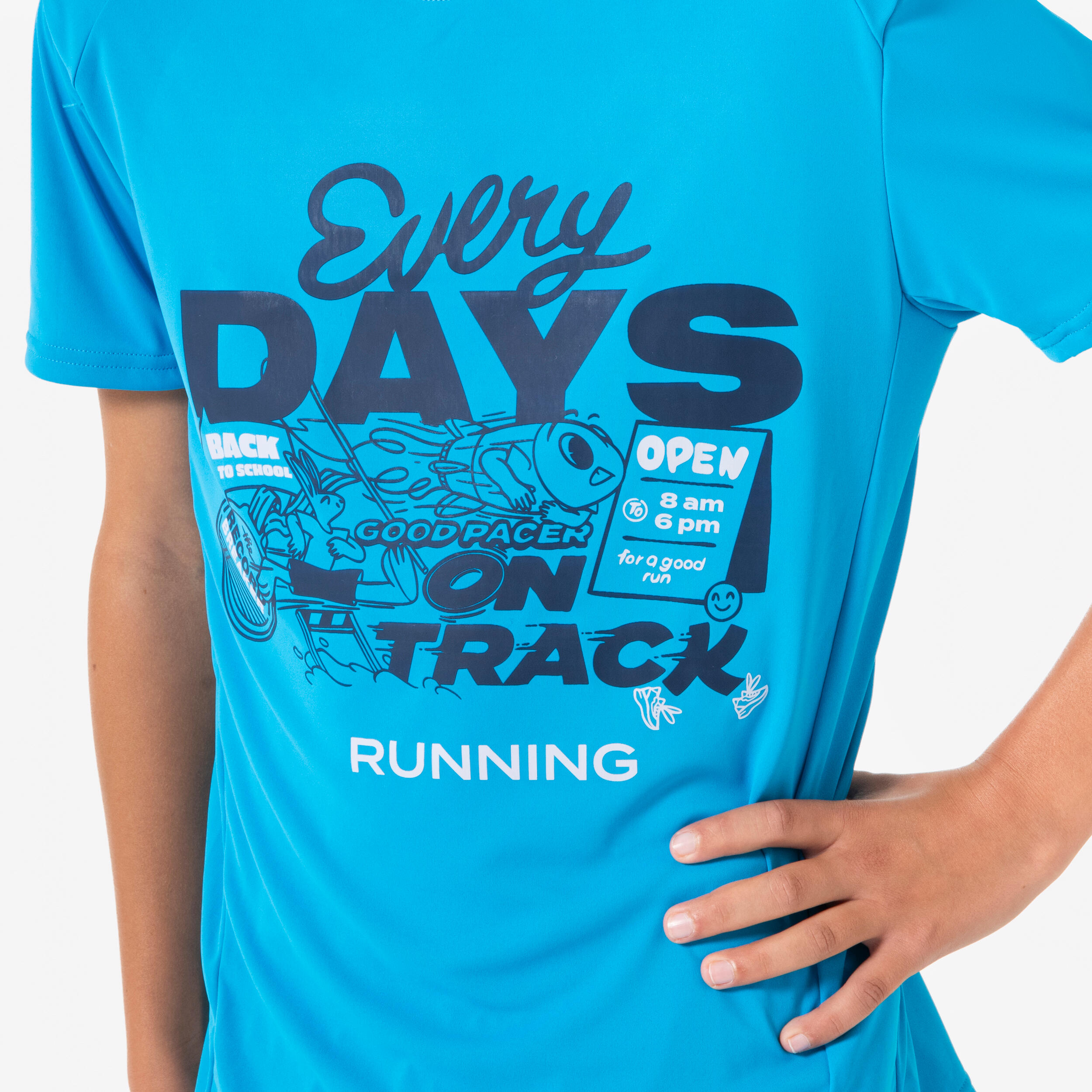 Our teams, composed of running enthusiasts, designed this kids' lightweight breathable running T-shirt for athletics training in a club at school.