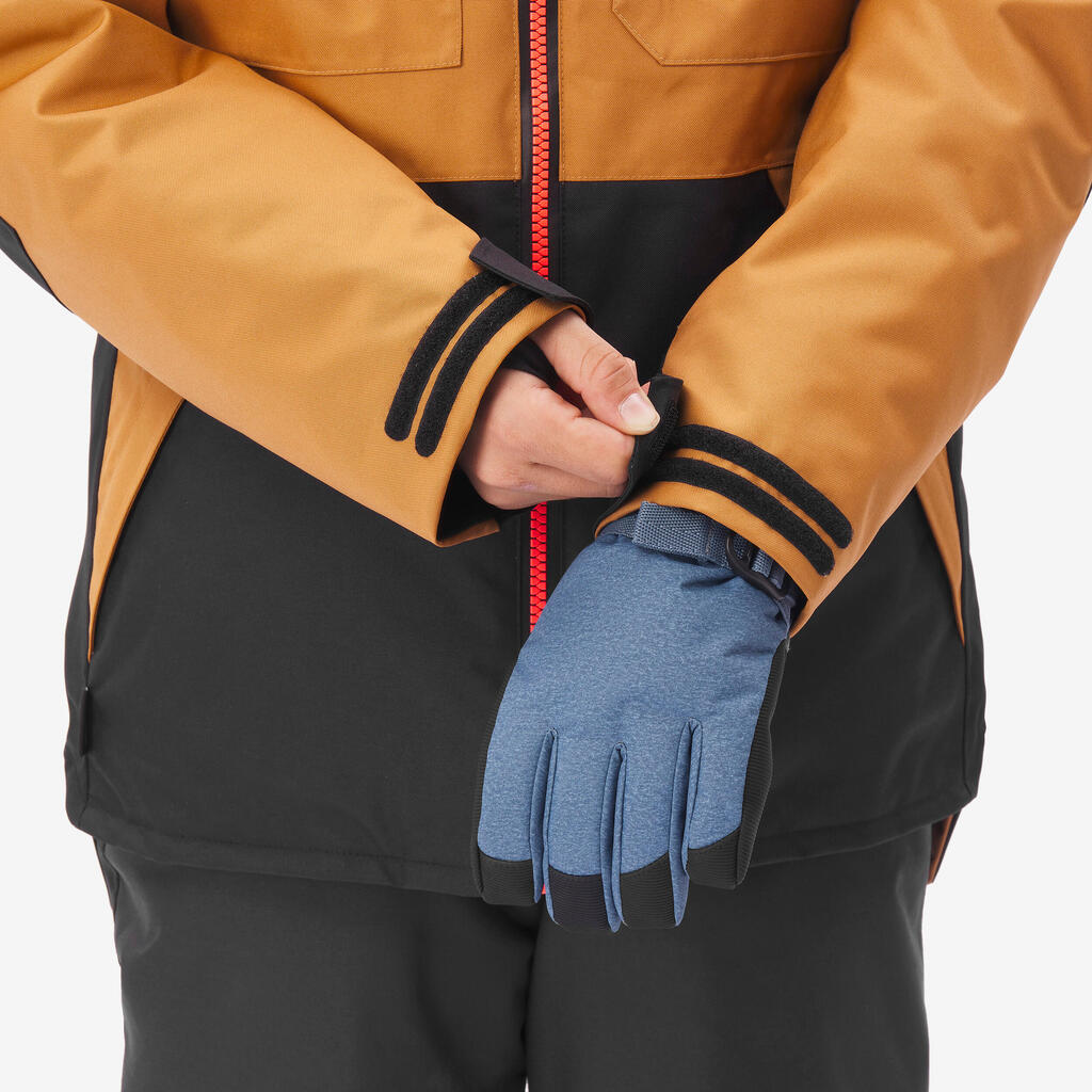This jacket has been developed and tested with the MI 500 JR PROTECT snowboard mittens which go under the jacket so that kids can easily pass the mittens through the sleeve on their own (from 8 years upwards - at 6 years old it's still complicated). Then there are a host of features to keep the snow out