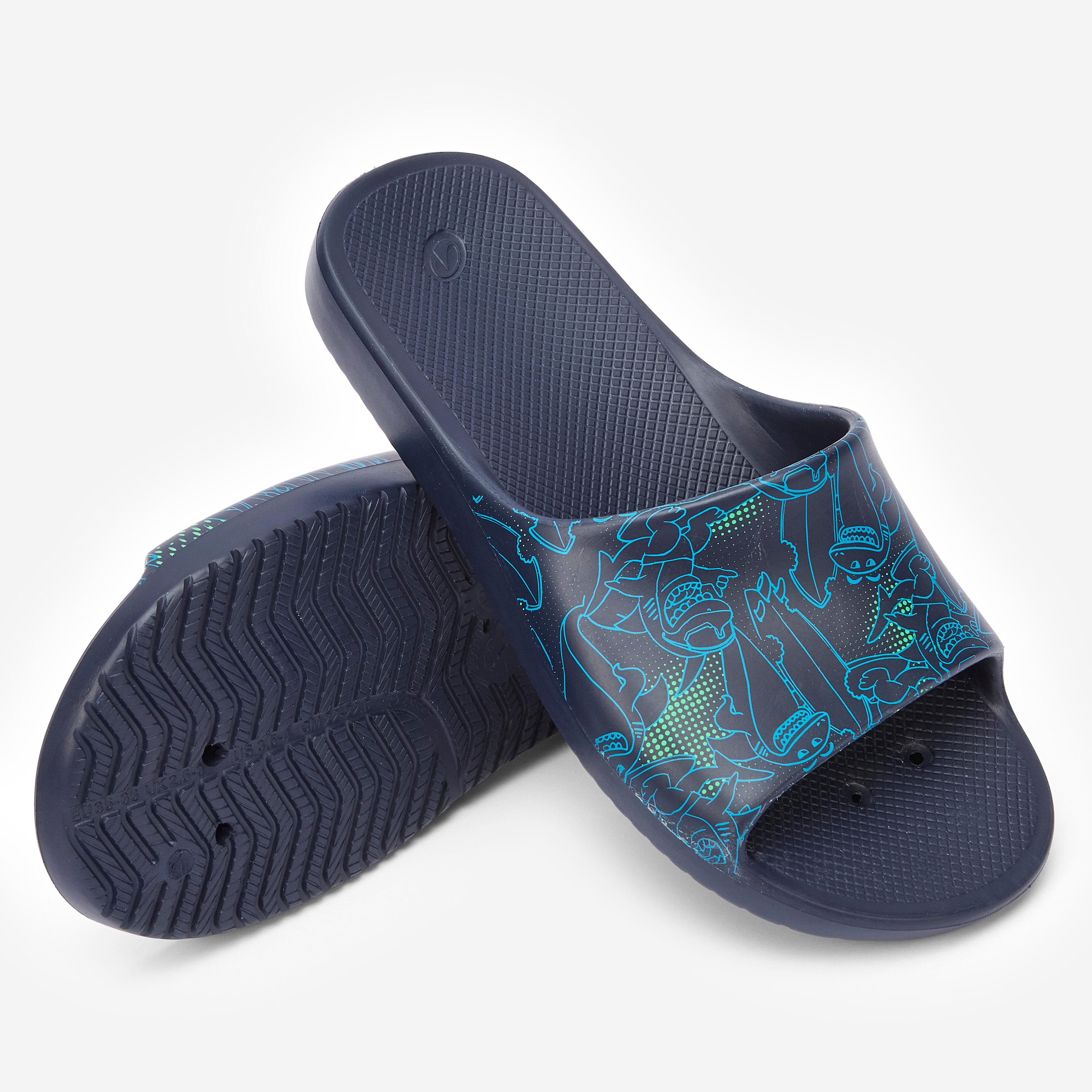Kids’ swimming pool flip-flops, Slap 500 sharks navy