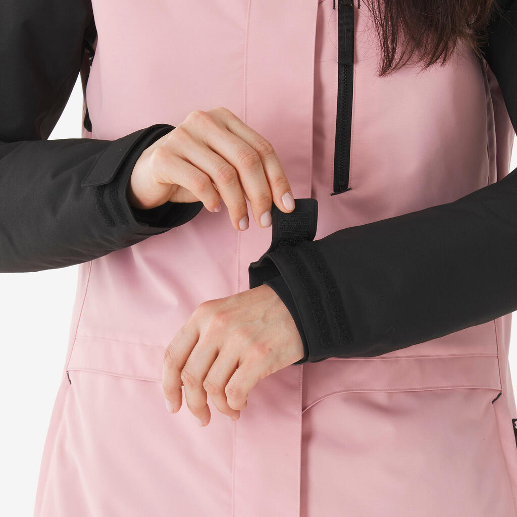 The waterproof component and the assembly prevent water getting in. The seams are waterproof, and the zips are also waterproof and under a protective flap. This jacket has been tested in a special shower that reproduces the conditions of the ski resorts, and in the field for several days in different weather conditions.