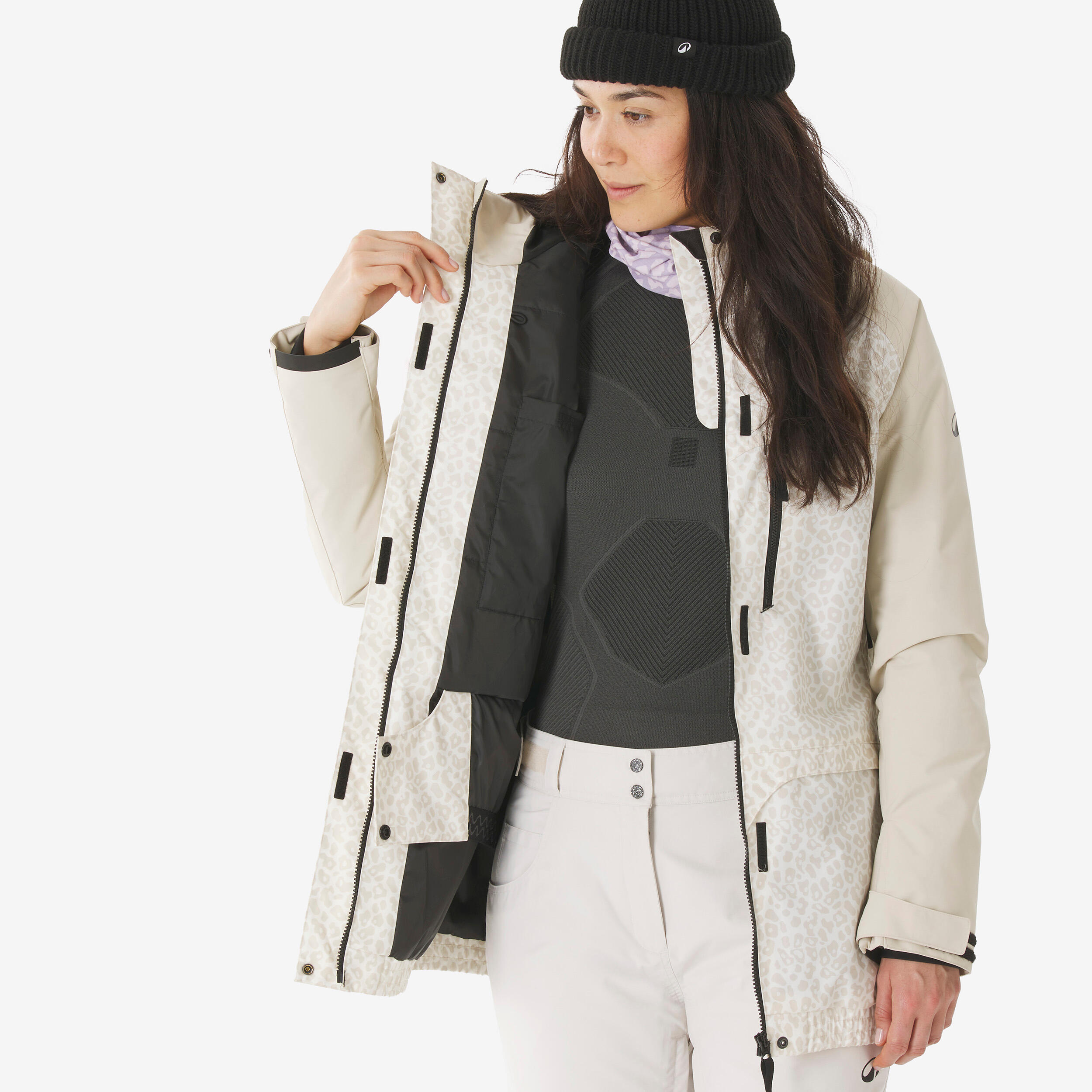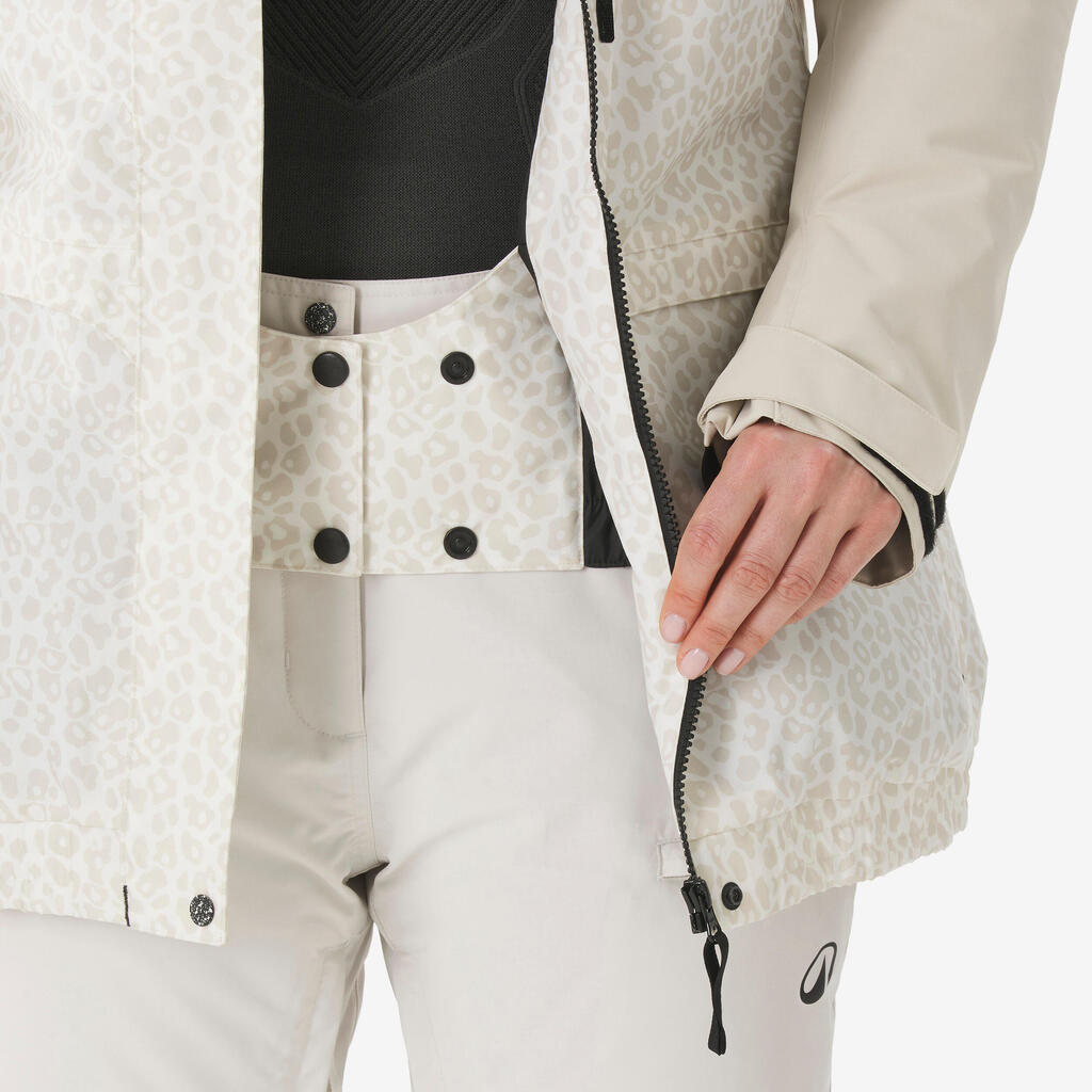 The waterproof component and the assembly prevent water getting in. The seams are waterproof, and the zips are also waterproof and under a protective flap. This jacket has been tested in a special shower that reproduces the conditions of the ski resorts, and in the field for several days in different weather conditions.