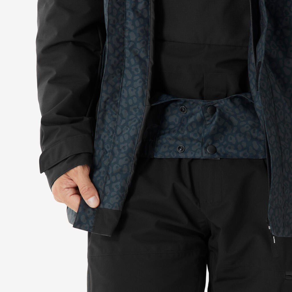 The waterproof component and the assembly prevent water getting in. The seams are waterproof, and the zips are under a protective flap. This jacket has been tested in a special shower that reproduces the conditions of the ski resorts, and in the field for several days in different weather conditions.