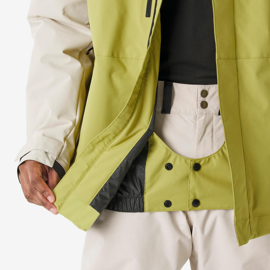The waterproof component and the assembly prevent water getting in. The seams are waterproof, and the zips are under a protective flap. This jacket has been tested in a special shower that reproduces the conditions of the ski resorts, and in the field for several days in different weather conditions.