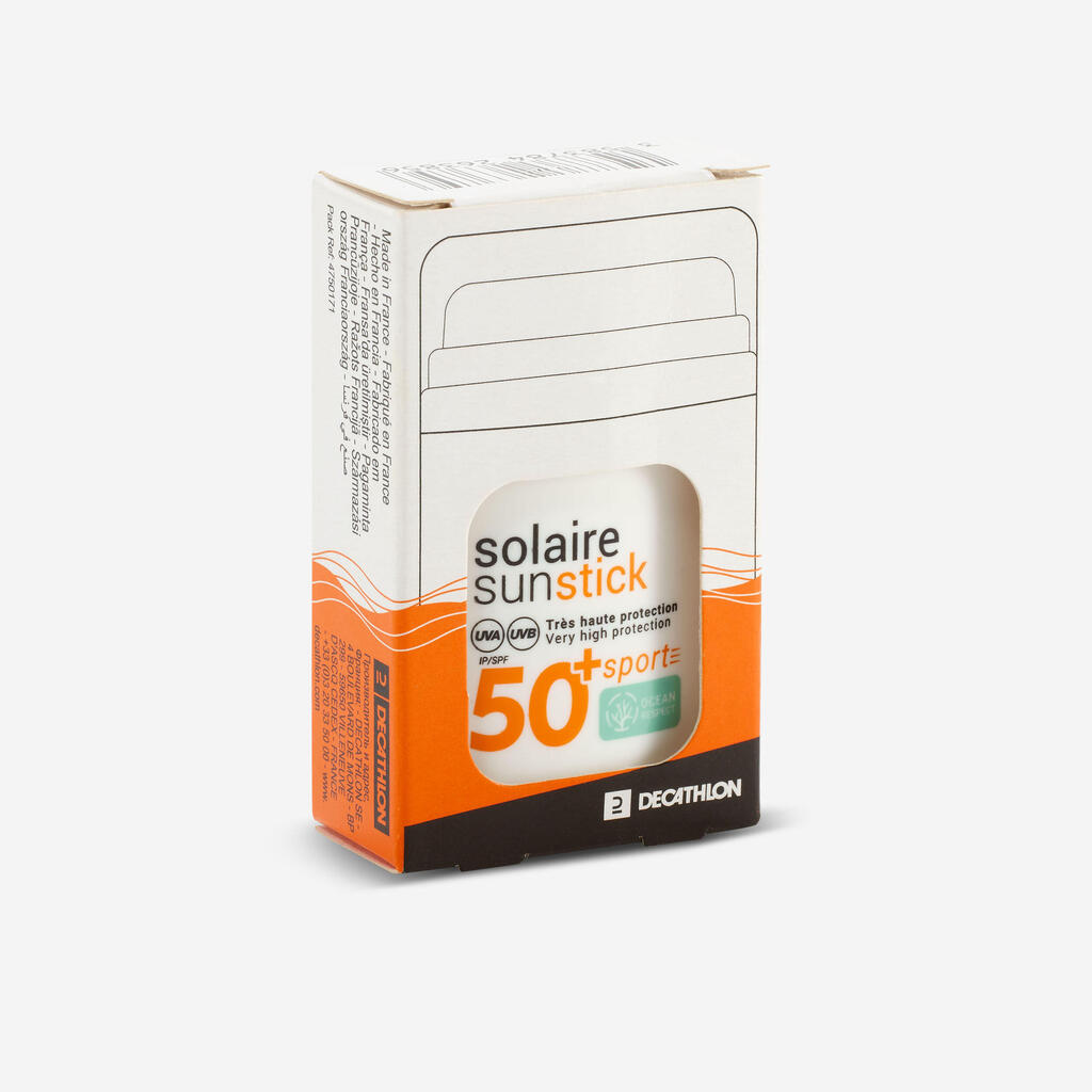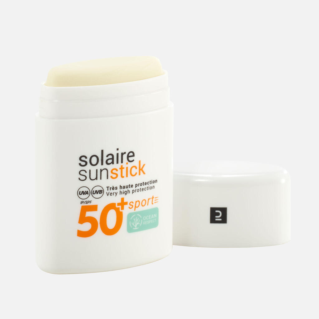 Lip balm built into the cap. Factor 50+. Very high UVA/UVB protection. Hydrating. Highly resistant to water and sweat.