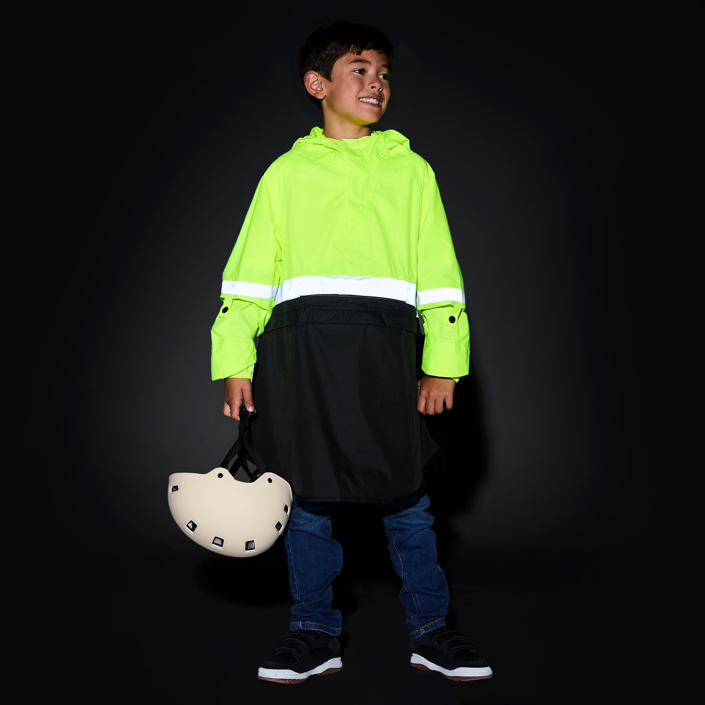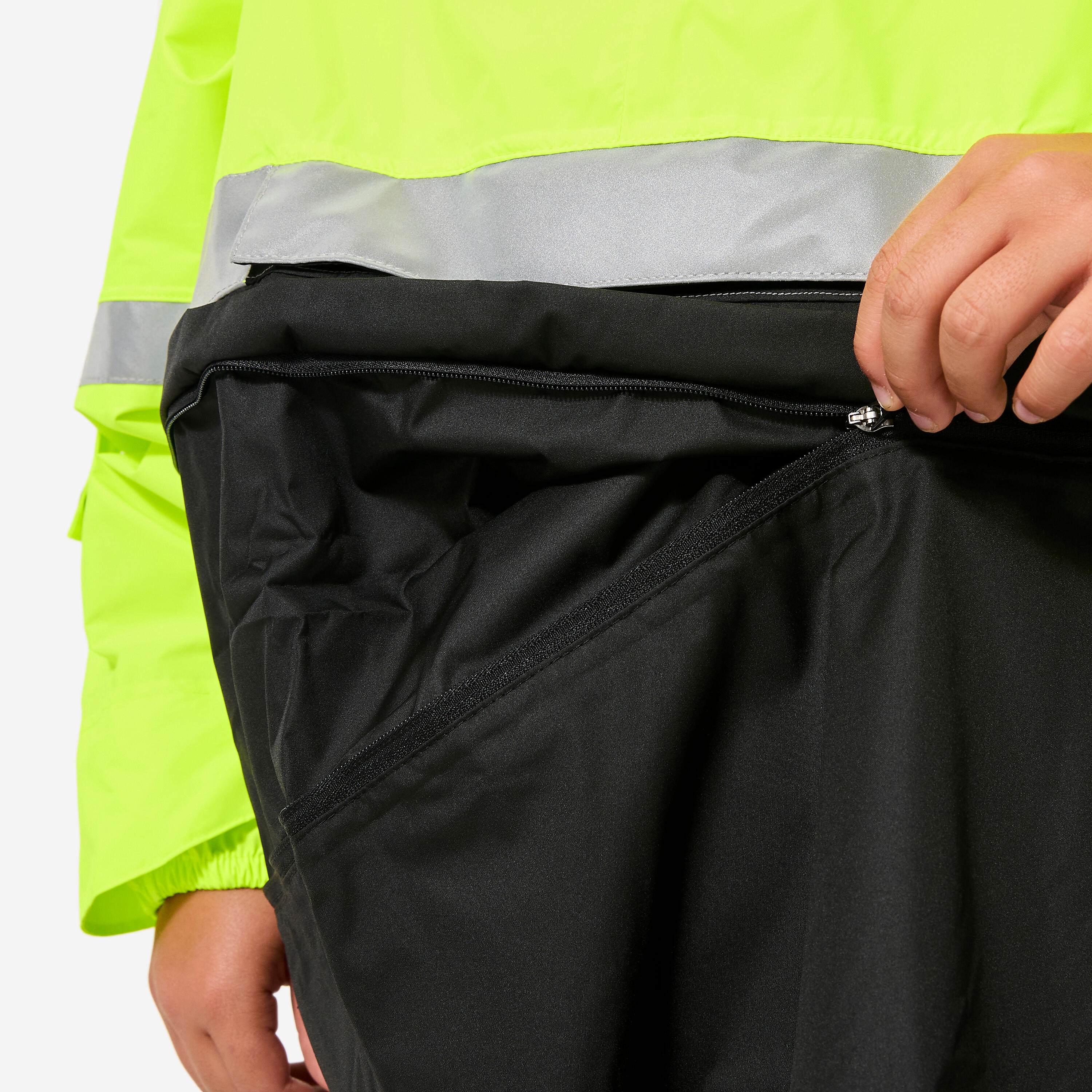 This poncho is certified for DAY and NIGHT VISIBILITY (EN17353 standard), with reflective strips to make cyclists visible even at night.