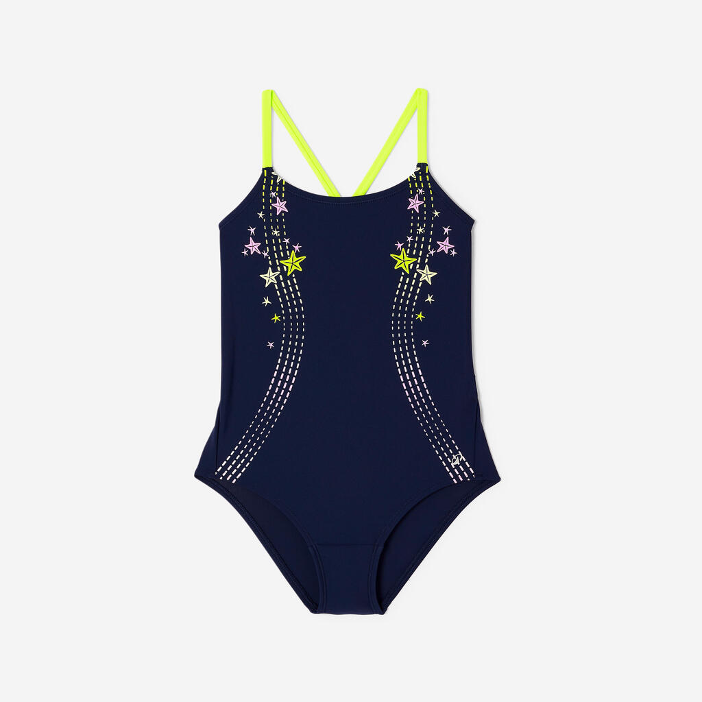 Young girls’ 1-piece swimsuit, Lila magic navy