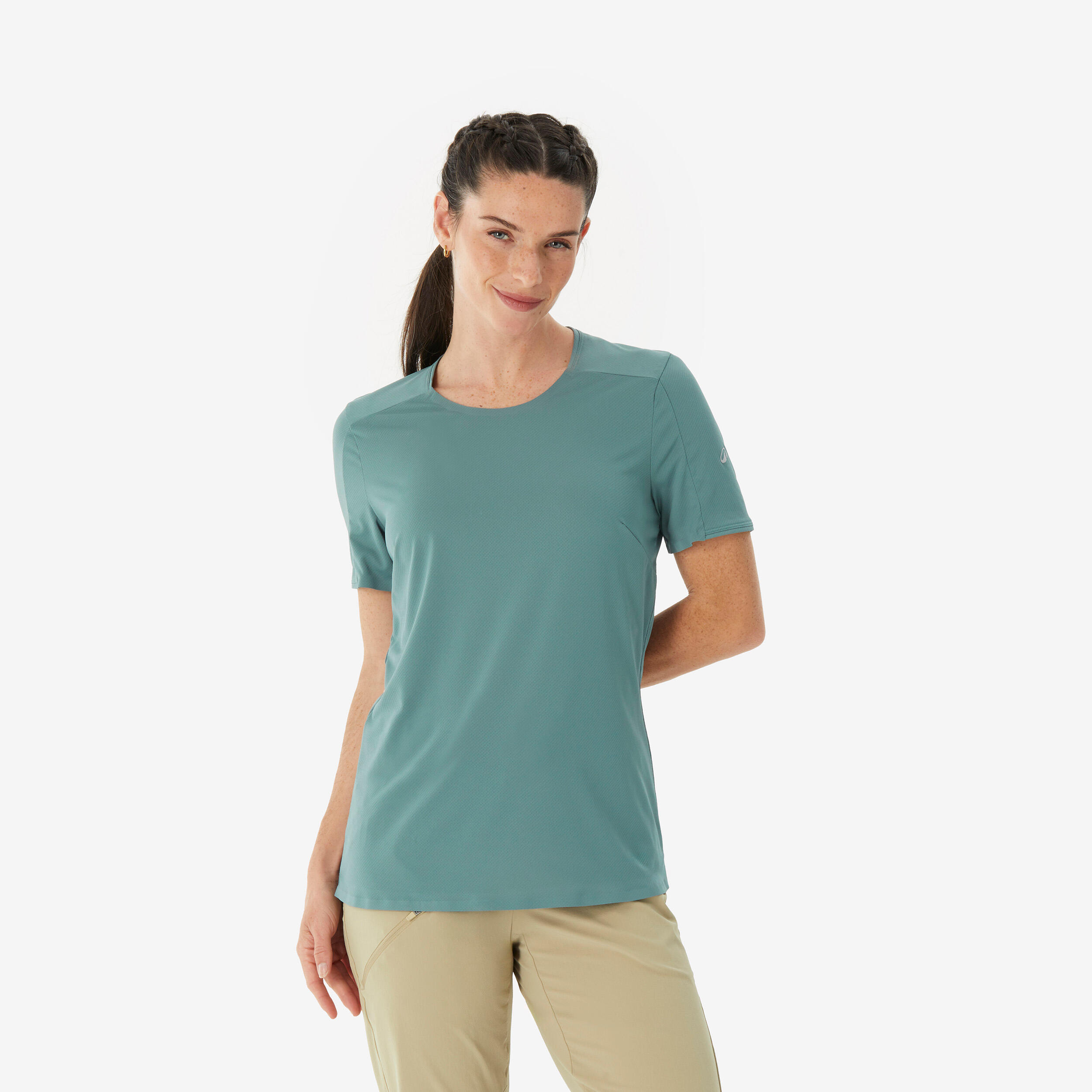 This short-sleeved hiking T-shirt is ideal for regular hiking. The breathable fabric wicks away perspiration.