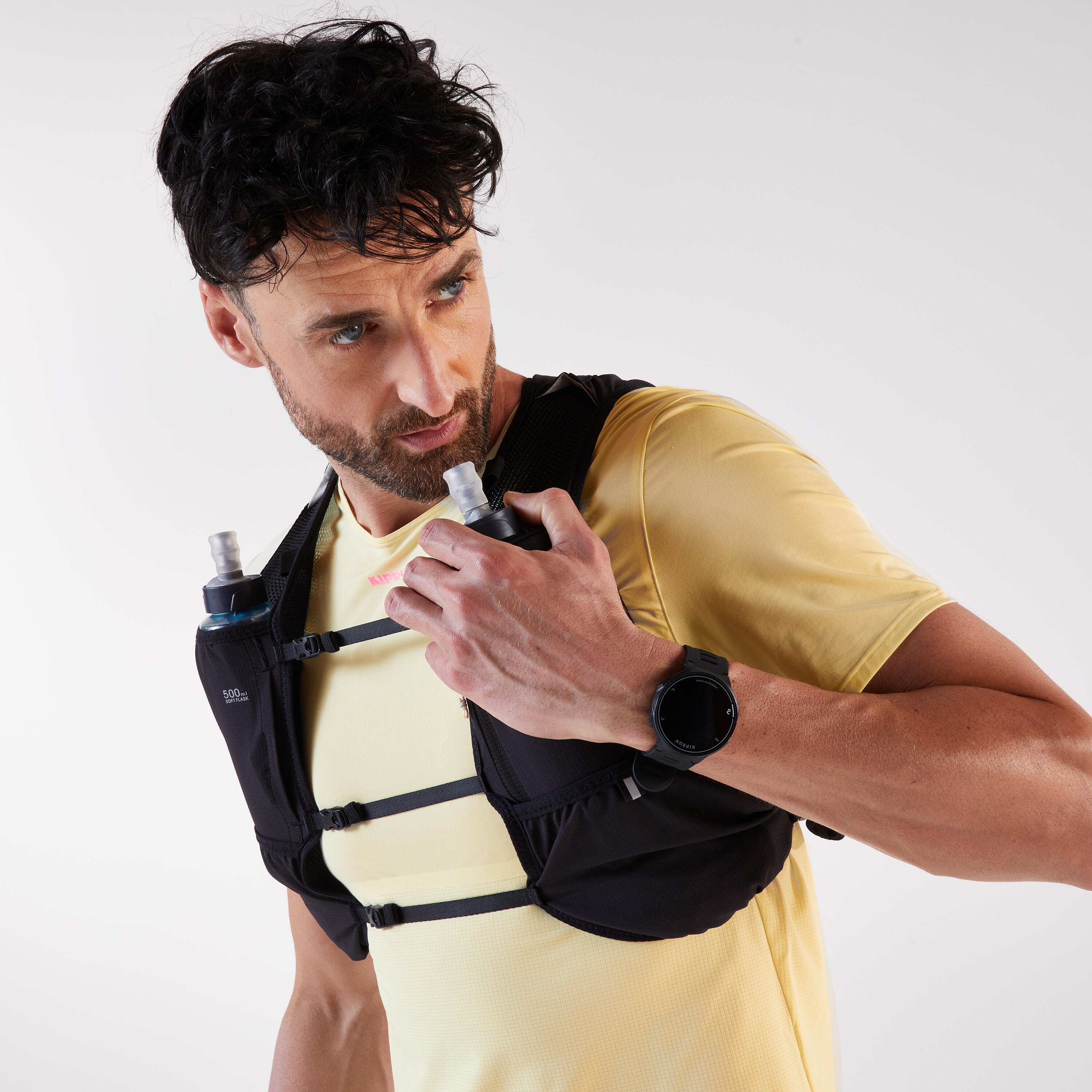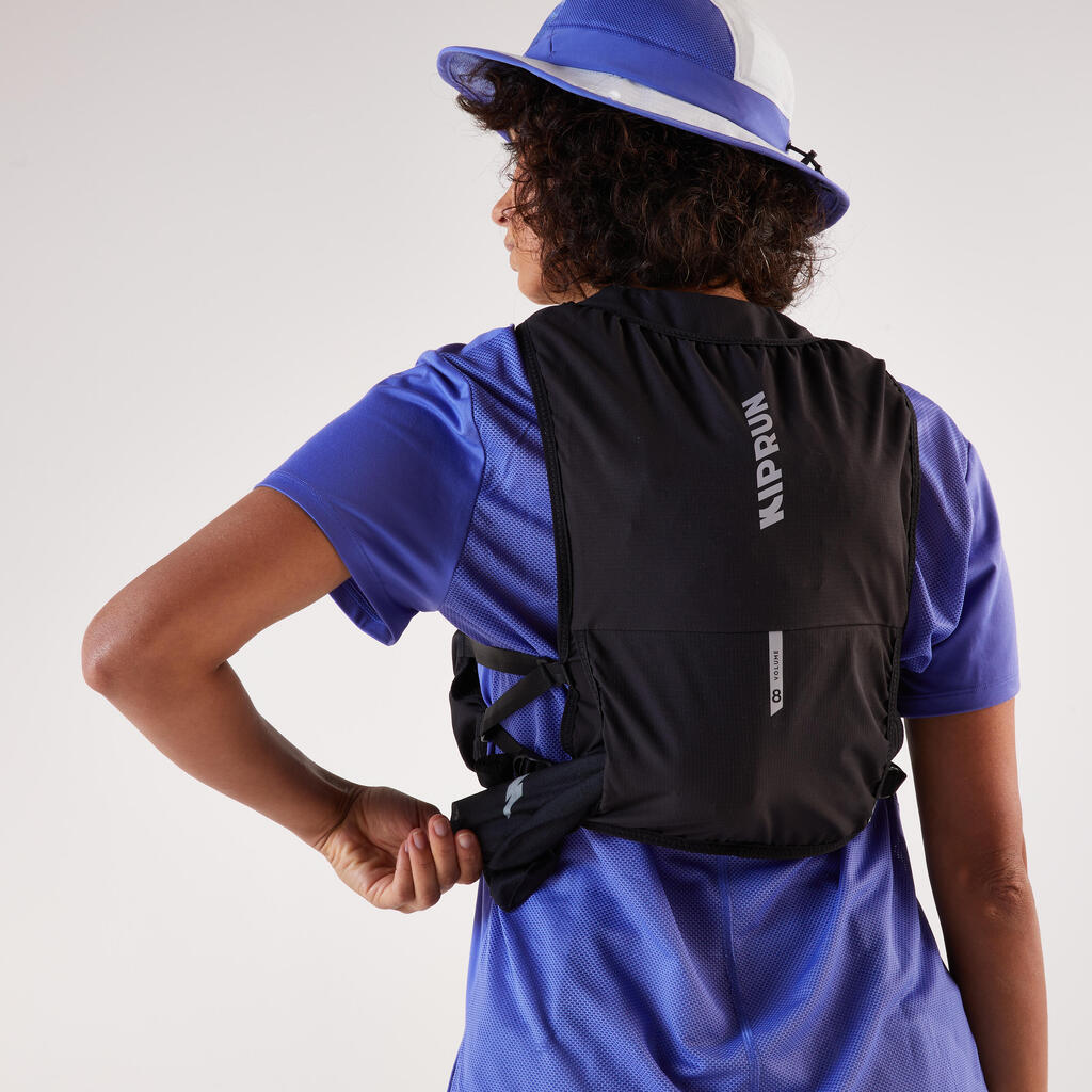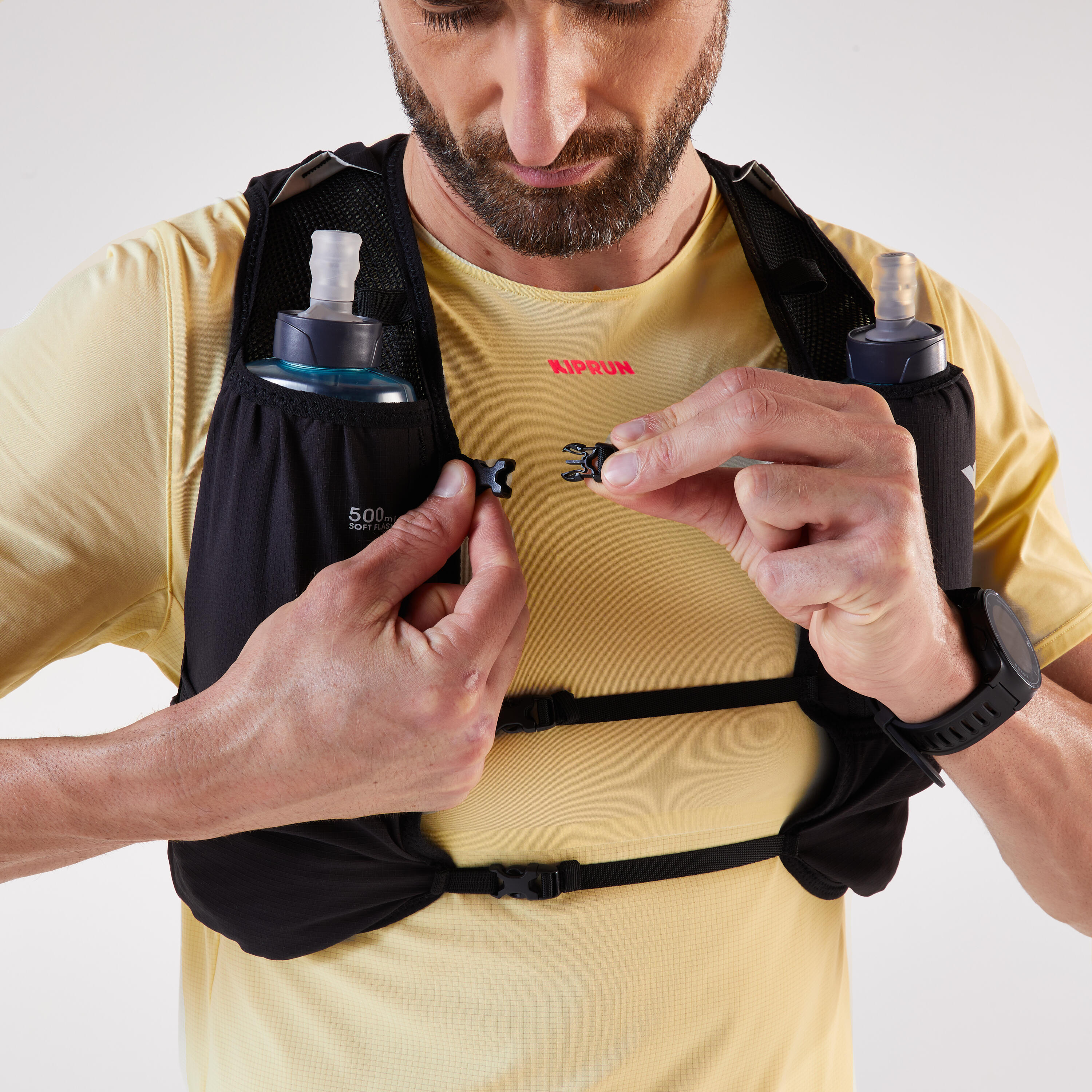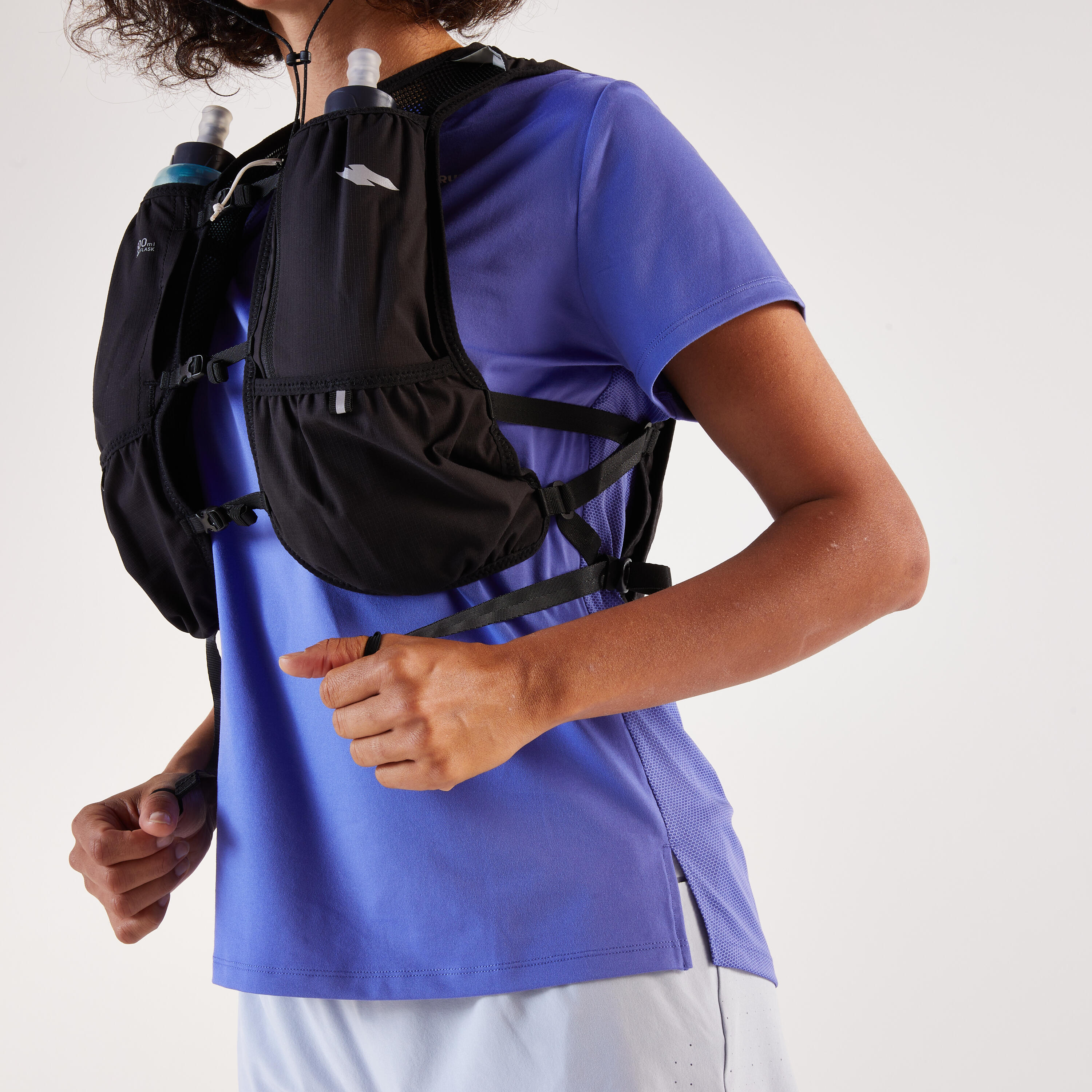 Our team of enthusiasts has designed this 8L Trail bag to carry your equipment, hydrate easily and store two 500 ml flasks during your trails.