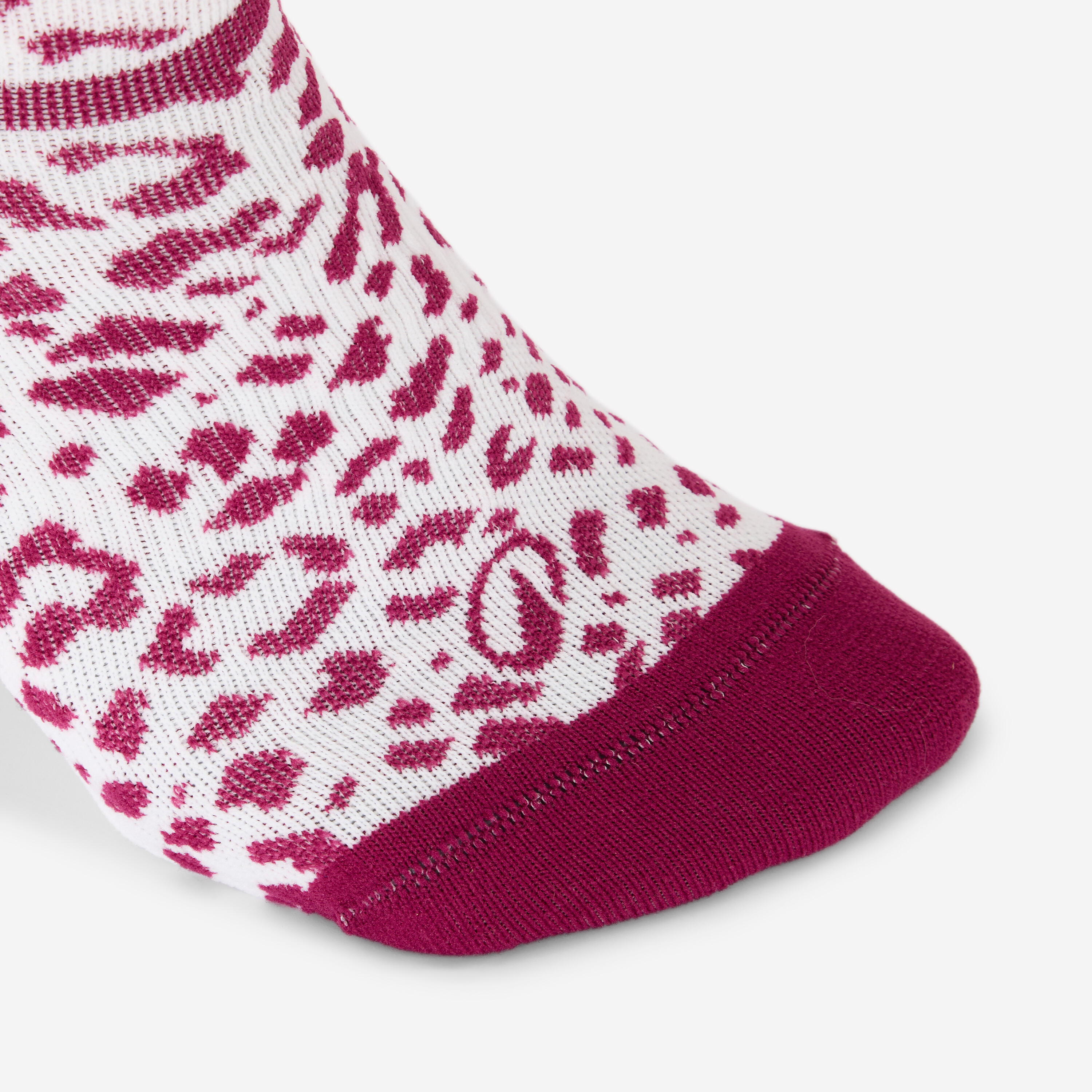 These socks feature reinforced heels and toes, the two areas that experience the most pressure and friction inside the shoe. These reinforcements provide extra comfort and reduce irritation in these sensitive areas. Under the forefoot, the main support area during fitness activities, technical threads reduce friction that causes blisters during jumps, burpees or knee lifts.