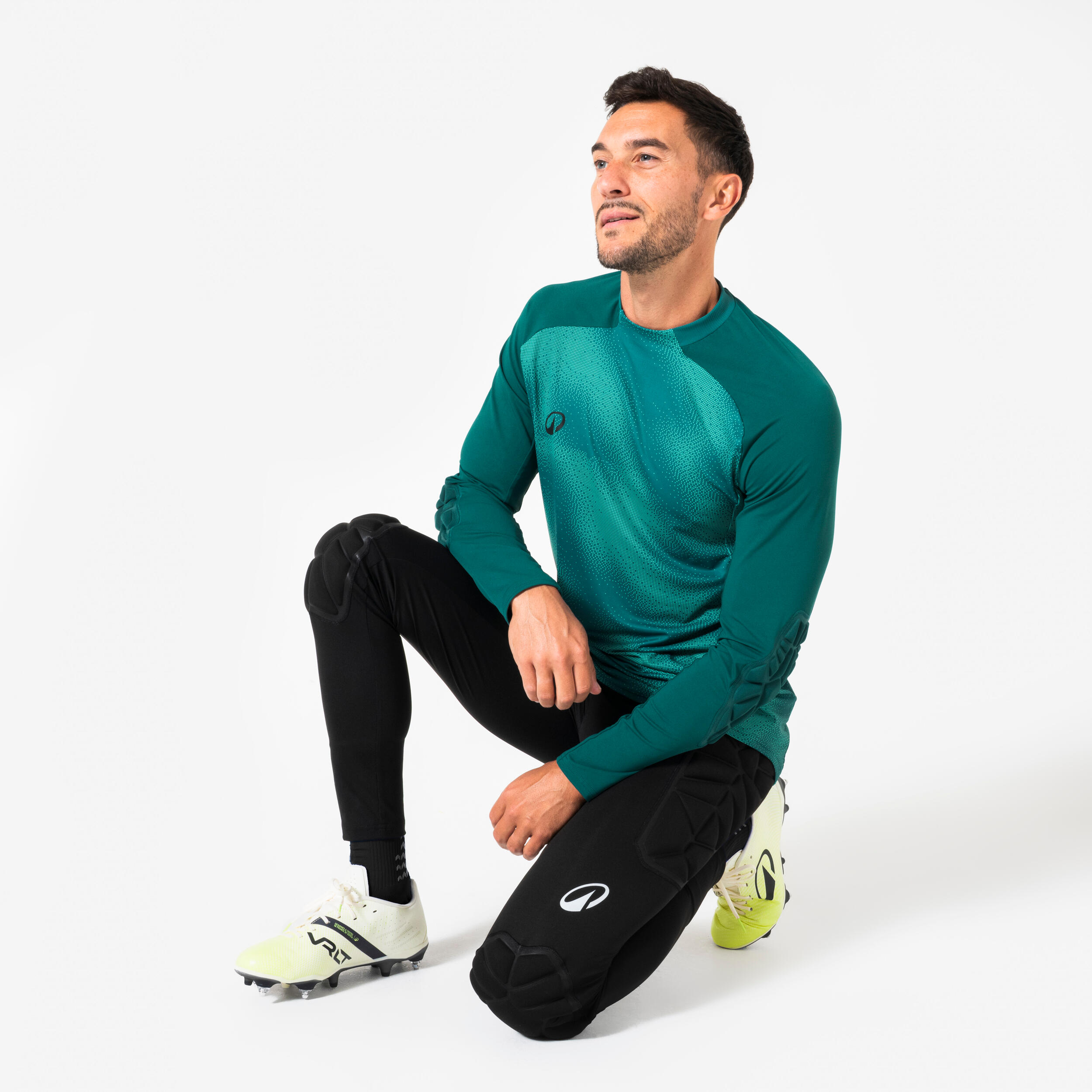 These goalkeeper bottoms feature thermocompressed pads designed to absorb shocks. They provide effective protection when diving.