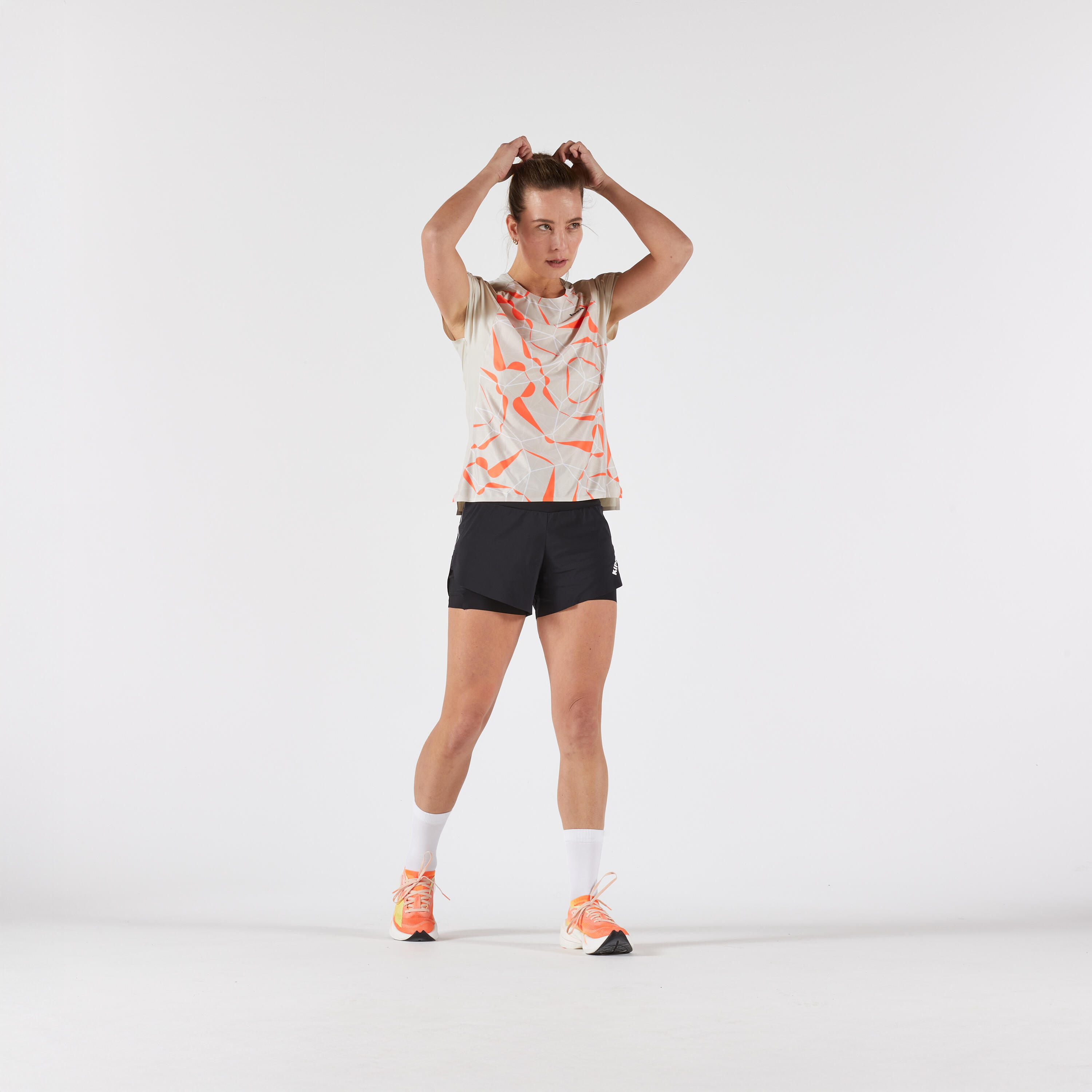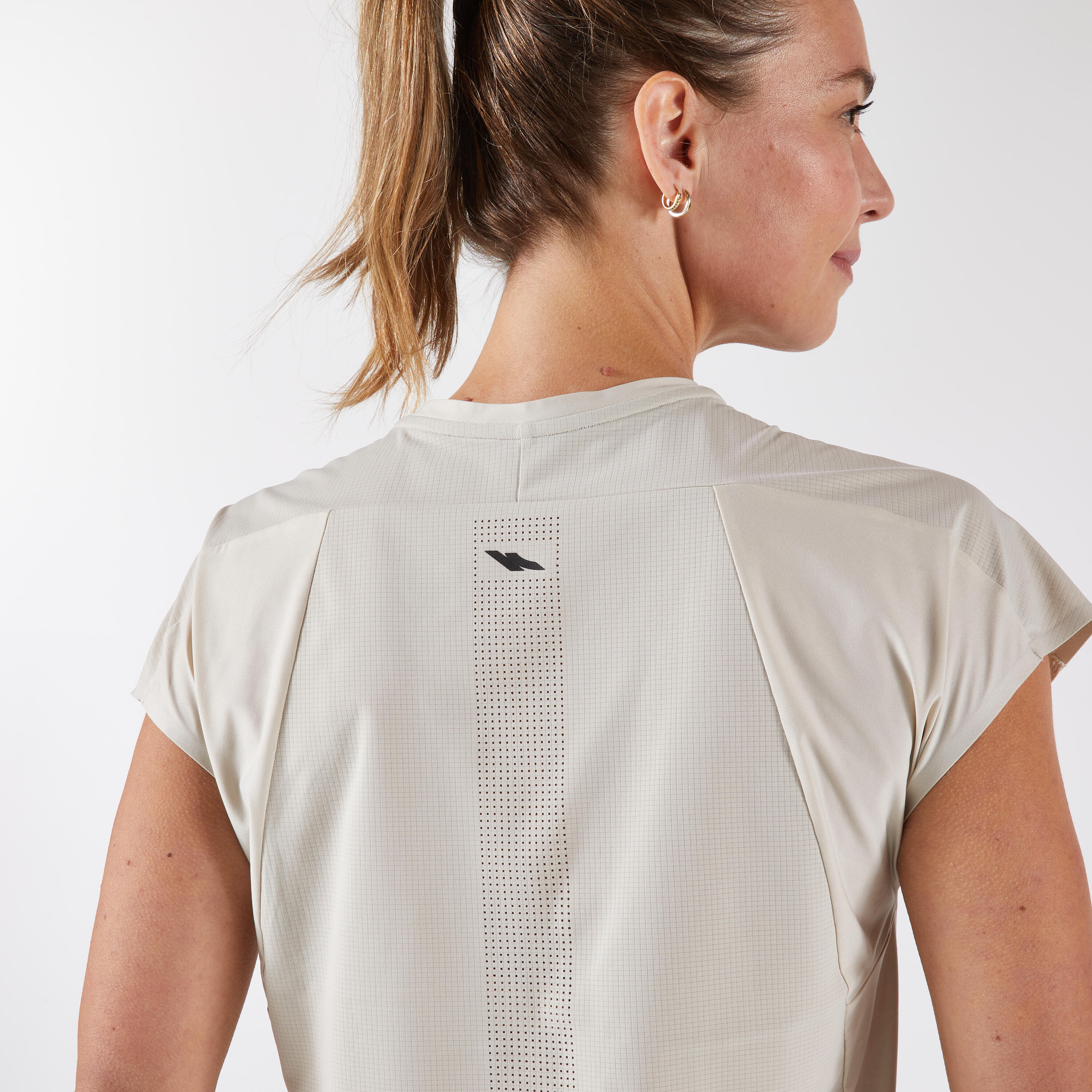 With excellent moisture management, lightweight design, and technical yet feminine finishes, this t-shirt will be perfect for road and trail runs.