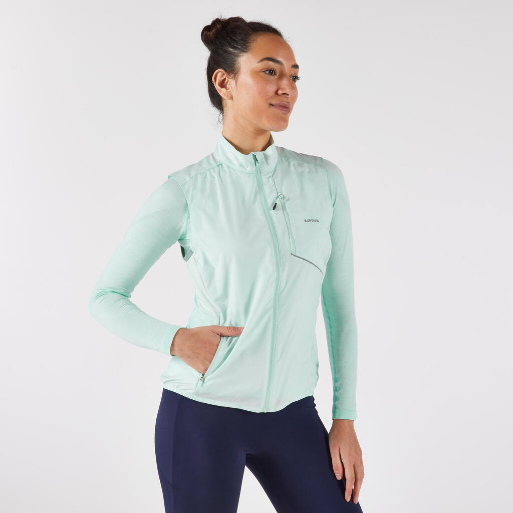 KIPRUN Run Wind 500 Women's Sleeveless Running Jacket - Light Green