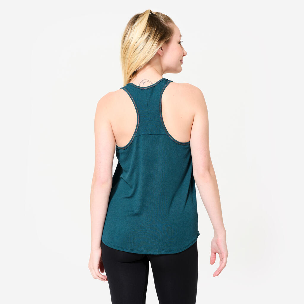 Do you want a loose yet sophisticated outfit? With its light, comfy fabric, this racer-back tank top follows all your movements.