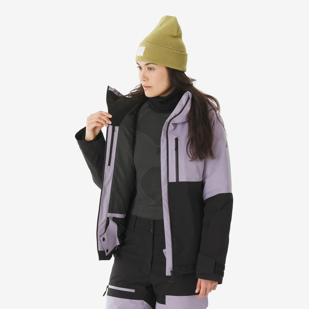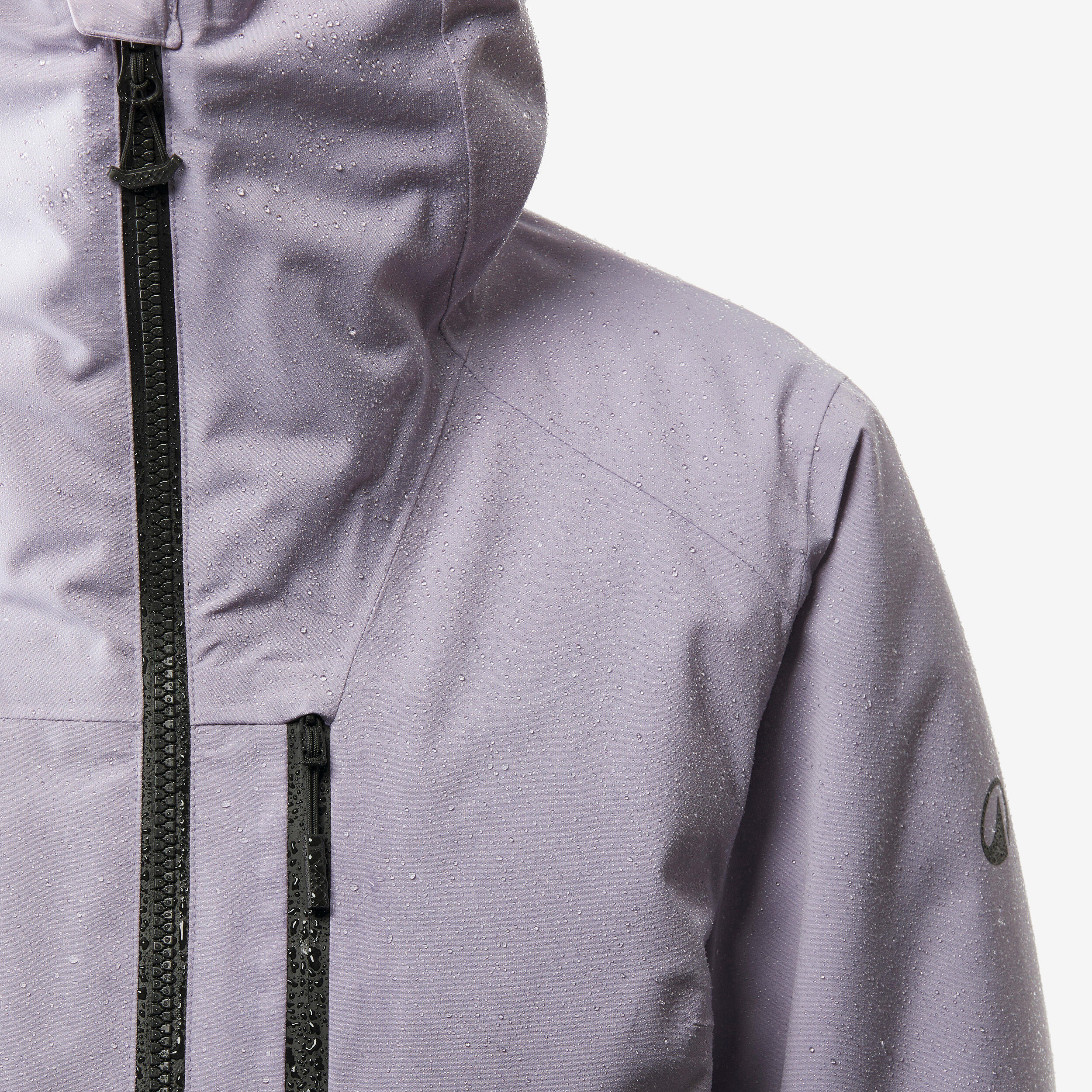 The waterproof component and the assembly prevent water getting in. The seams are waterproof, and the zips are also waterproof and under a protective flap. This jacket has been tested in a special shower that reproduces the conditions of the ski resorts, and in the field for several days in different weather conditions.