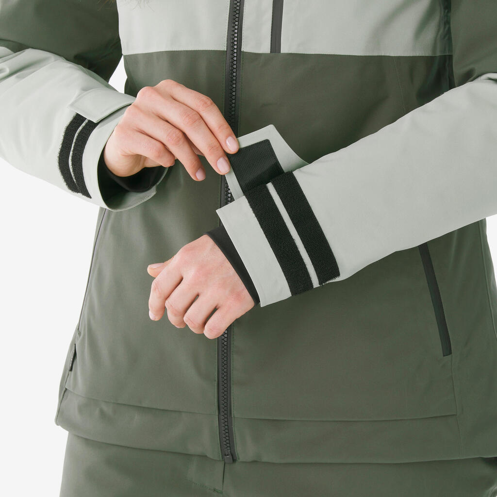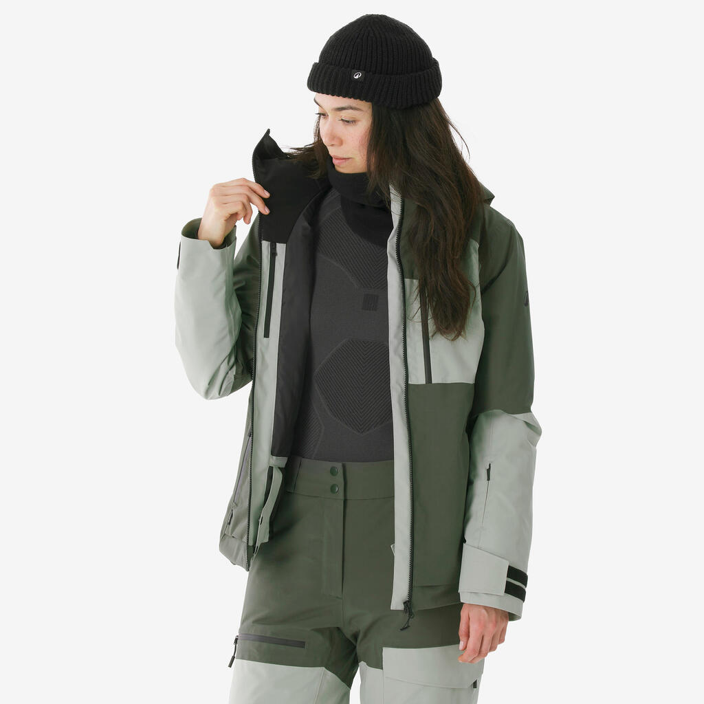 The waterproof component and the assembly prevent water getting in. The seams are waterproof, and the zips are also waterproof and under a protective flap. This jacket has been tested in a special shower that reproduces the conditions of the ski resorts, and in the field for several days in different weather conditions.