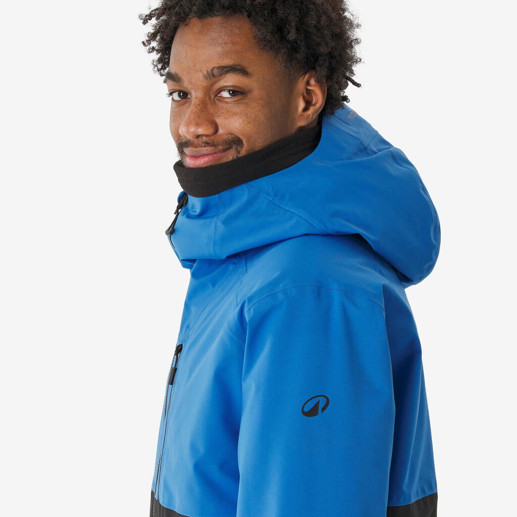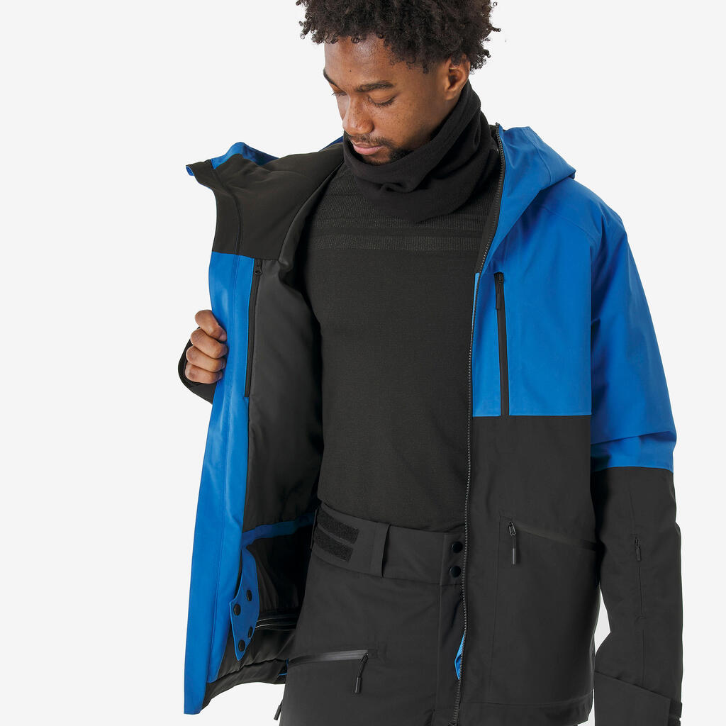 The waterproof component and the assembly prevent water getting in. The seams are waterproof, and the zips are also waterproof and under a protective flap. This jacket has been tested in a special shower that reproduces the conditions of the ski resorts, and in the field for several days in different weather conditions.
