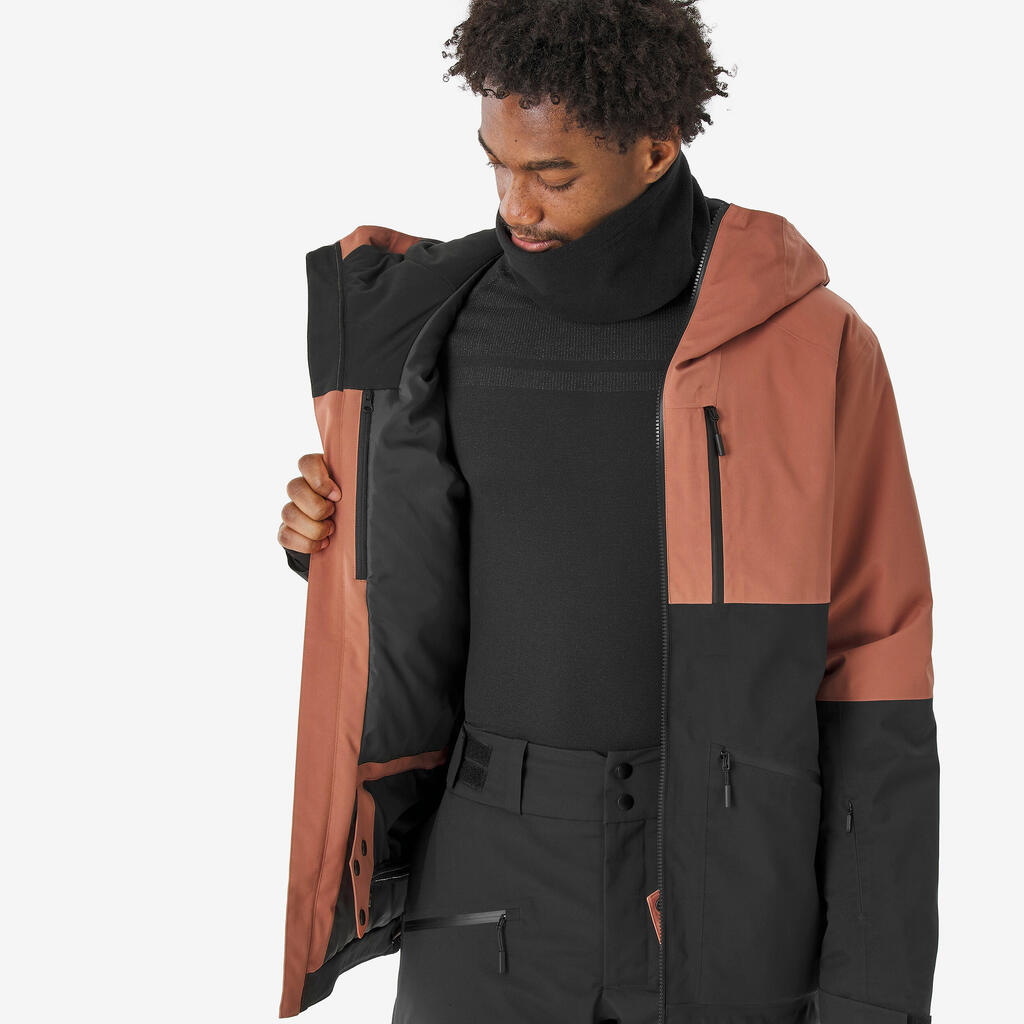 The waterproof component and the assembly prevent water getting in. The seams are waterproof, and the zips are also waterproof and under a protective flap. This jacket has been tested in a special shower that reproduces the conditions of the ski resorts, and in the field for several days in different weather conditions.