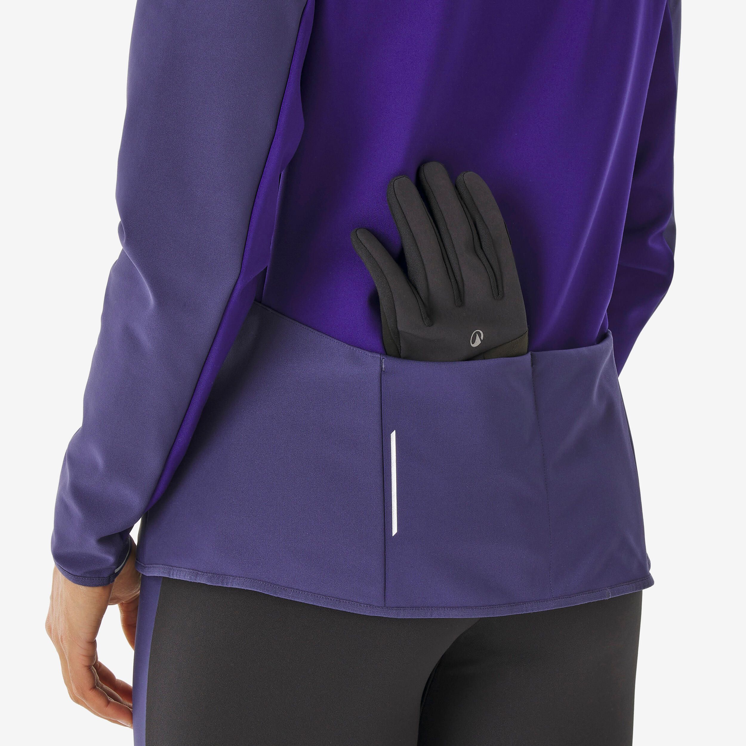 On the chest, wadding protects the area most sensitive to the cold. The fabric is relatively thin on the stomach for greater comfort when wearing a hydration belt. The very stretchy fabrics on the arms and back provide great freedom of movement.
