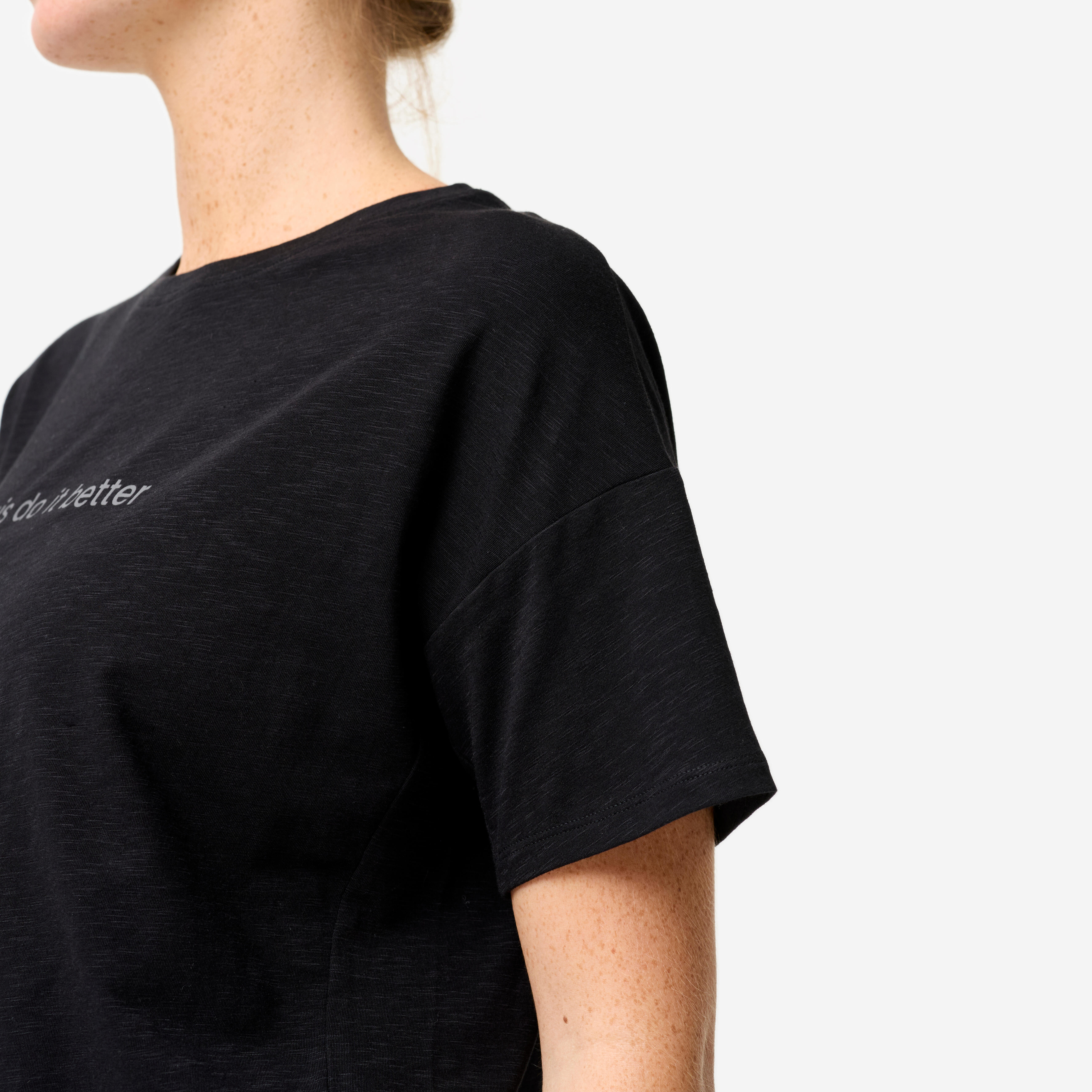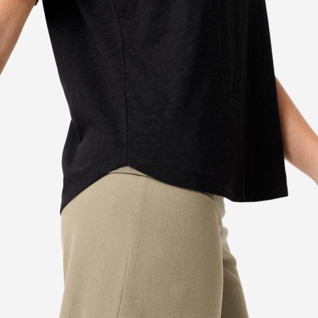 Move freely with this long-cut draped T-shirt, which guarantees impeccable coverage of your lower back and hips, even during squats or stretching. The visual effect of the cut gives your silhouette extra length. This style of cut can be worn both for sport and for casual wear at home, making it a versatile T-shirt.