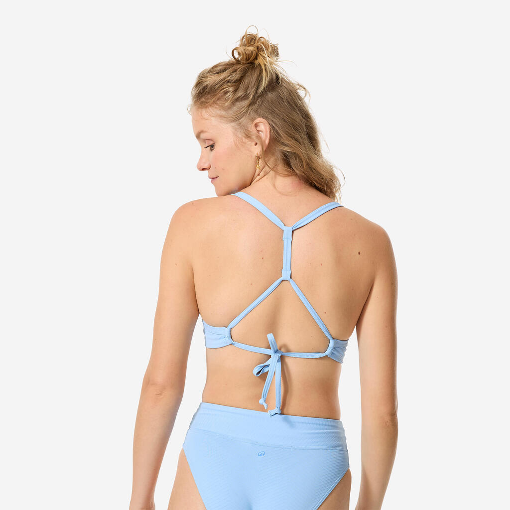 A wave can rip off your swimsuit at any moment when you’re out surfing. That’s why we designed the BEA bikini top. A feminine fit with its close-fitting V-neck, it stays in place thanks to a double-adjustable back (top of back and under bust) and is great for any body type.