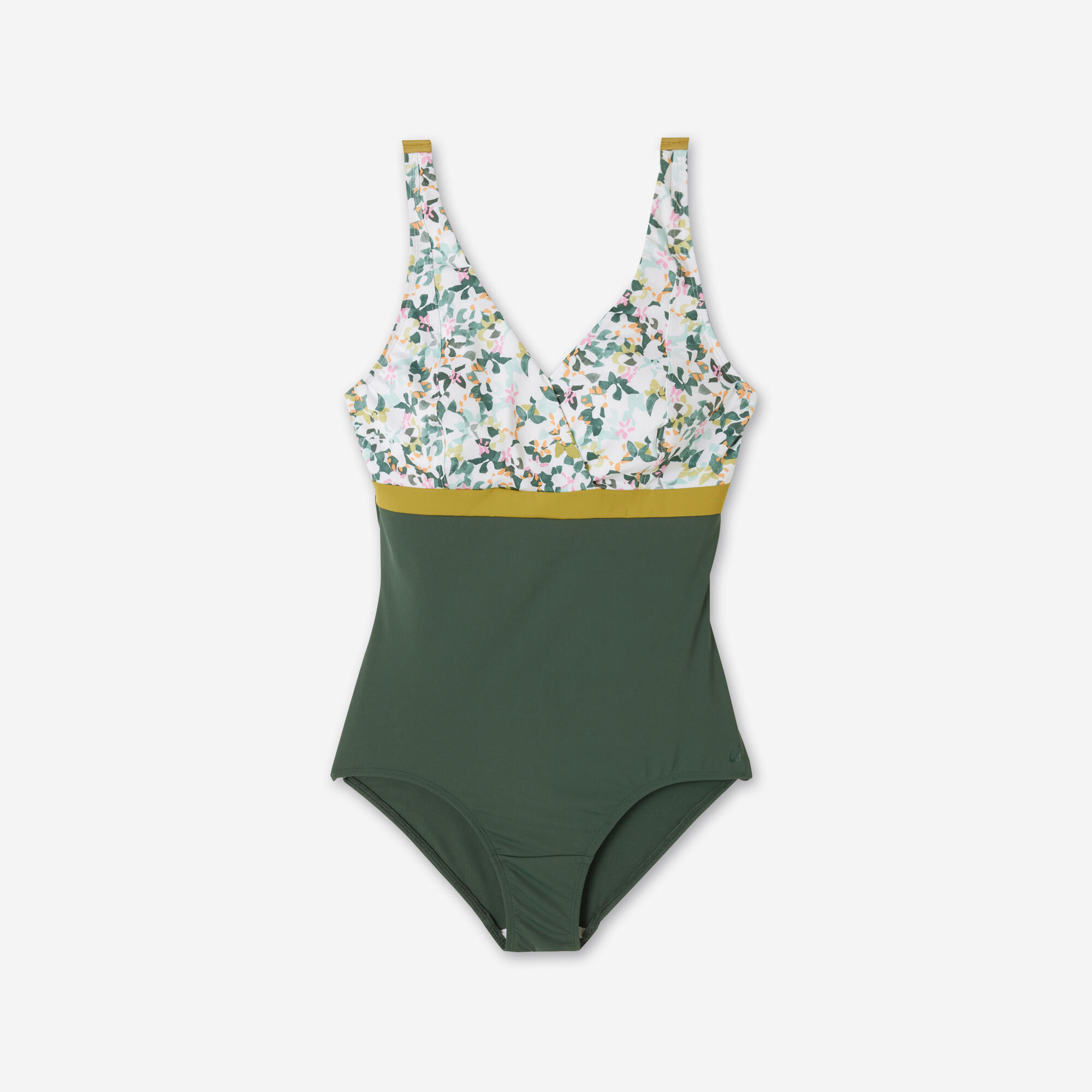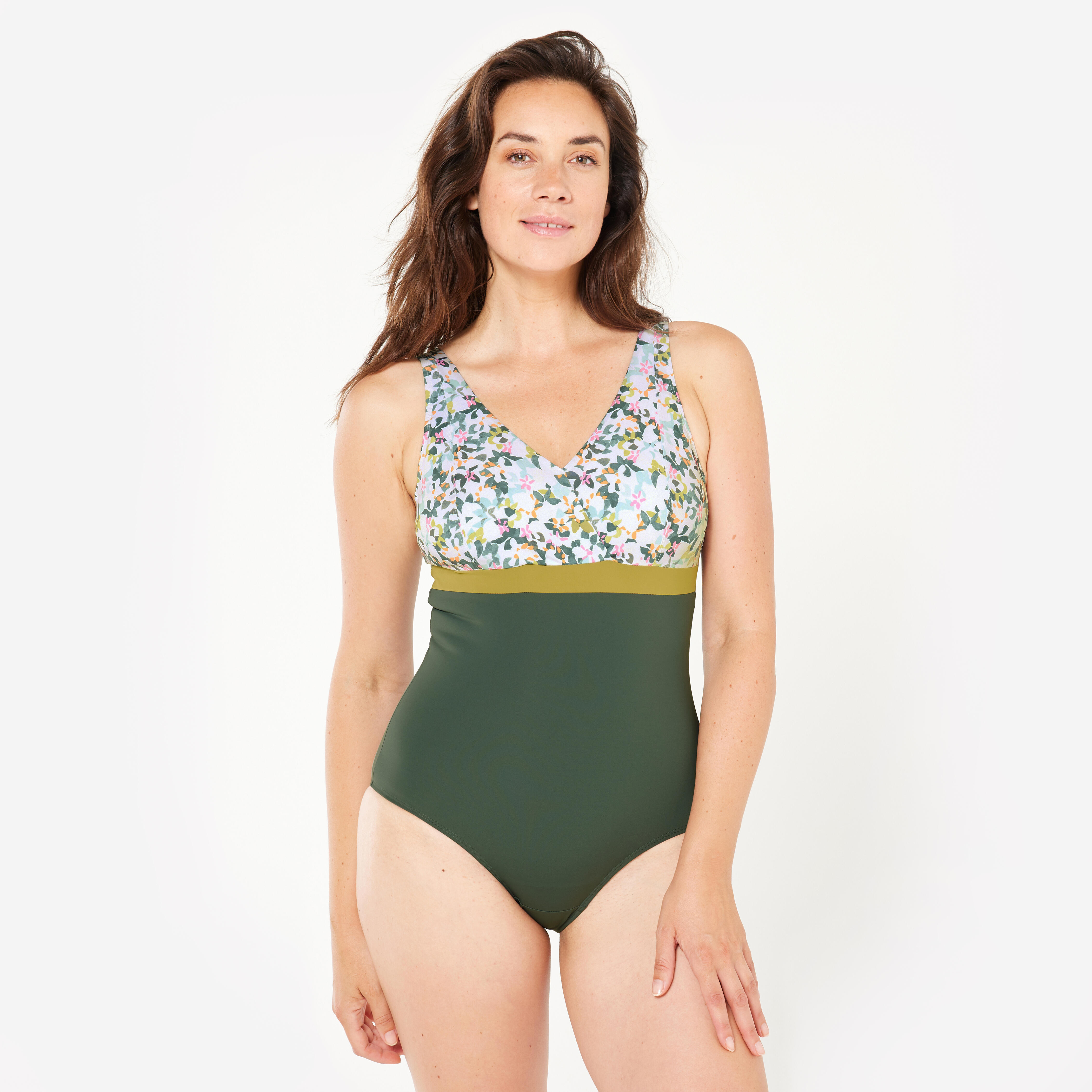 Designed for women with larger busts, this 1-piece swimsuit provides comfort and support for aquafitness or swimming with peace of mind.