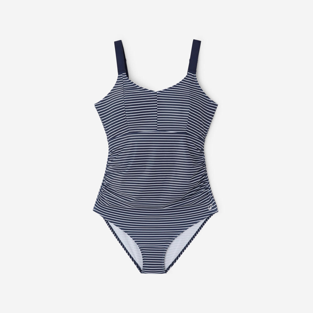 Easy to put on thanks to the U-shaped back, this maternity swimsuit provides bust support for gentle activities. The gathering adds volume to adapt to your changing tummy.