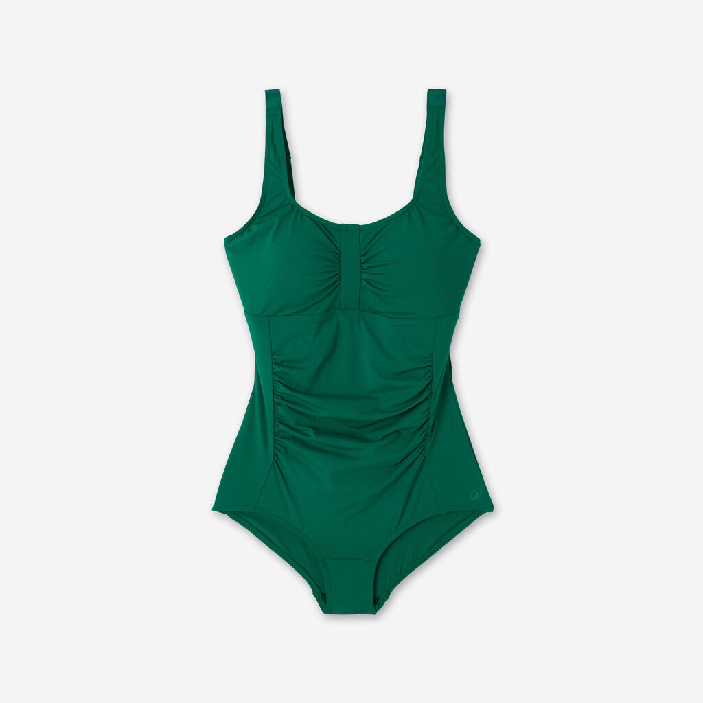 A women’s 1-piece swimsuit with good coverage, designed for aquafitness or swimming with confidence. Feel confident in yourself and in your swimsuit!