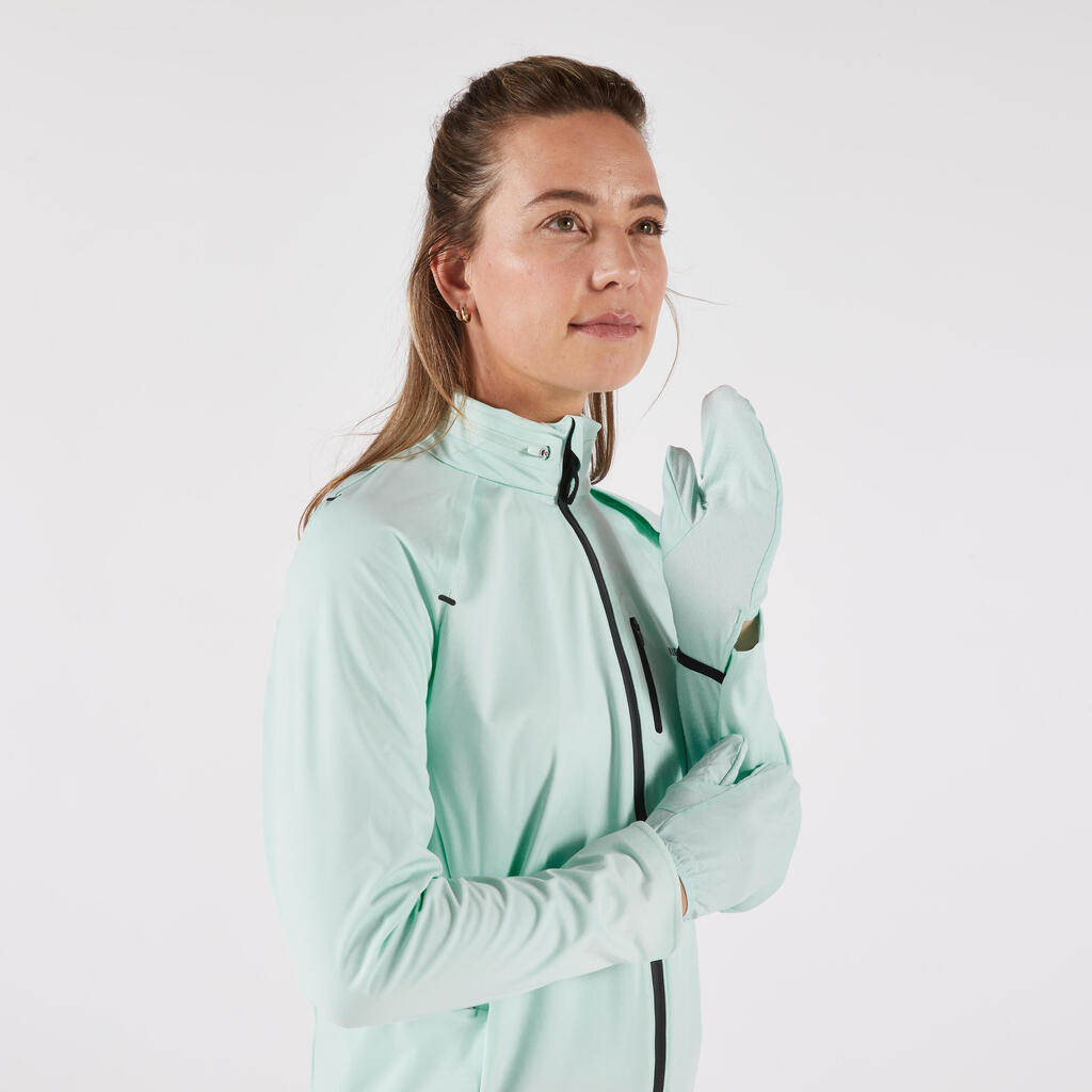 This running jacket's component offers a wide array of protective qualities, allowing you to run in almost any weather:Cold, windy, and rainy (just a light rain as the seams are not sealed).