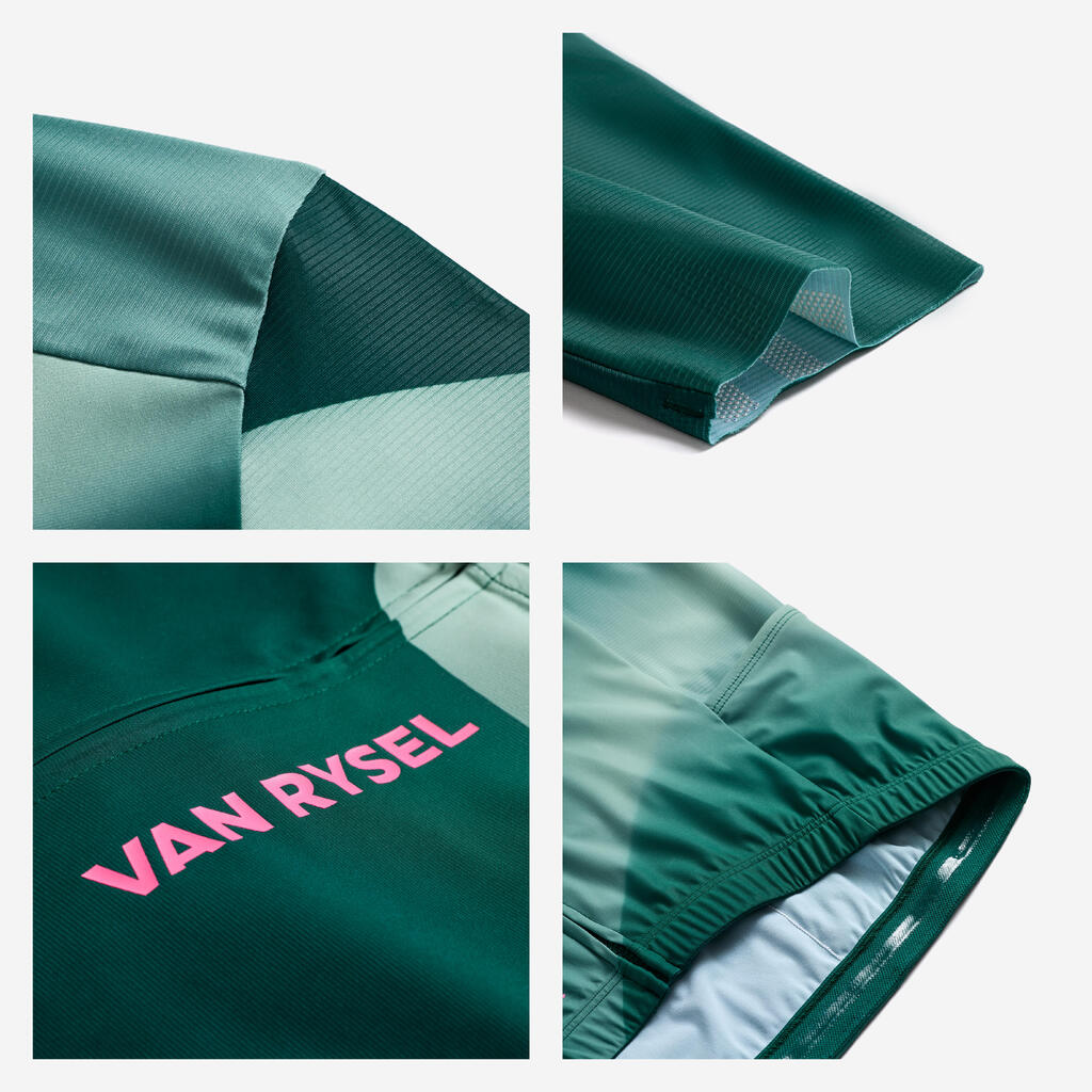 - Support: elastic at the waist and wrists for an excellent fit.- Length: shorter to stop it creasing at the front when you're in a racing position and sagging at the back when your pockets are full