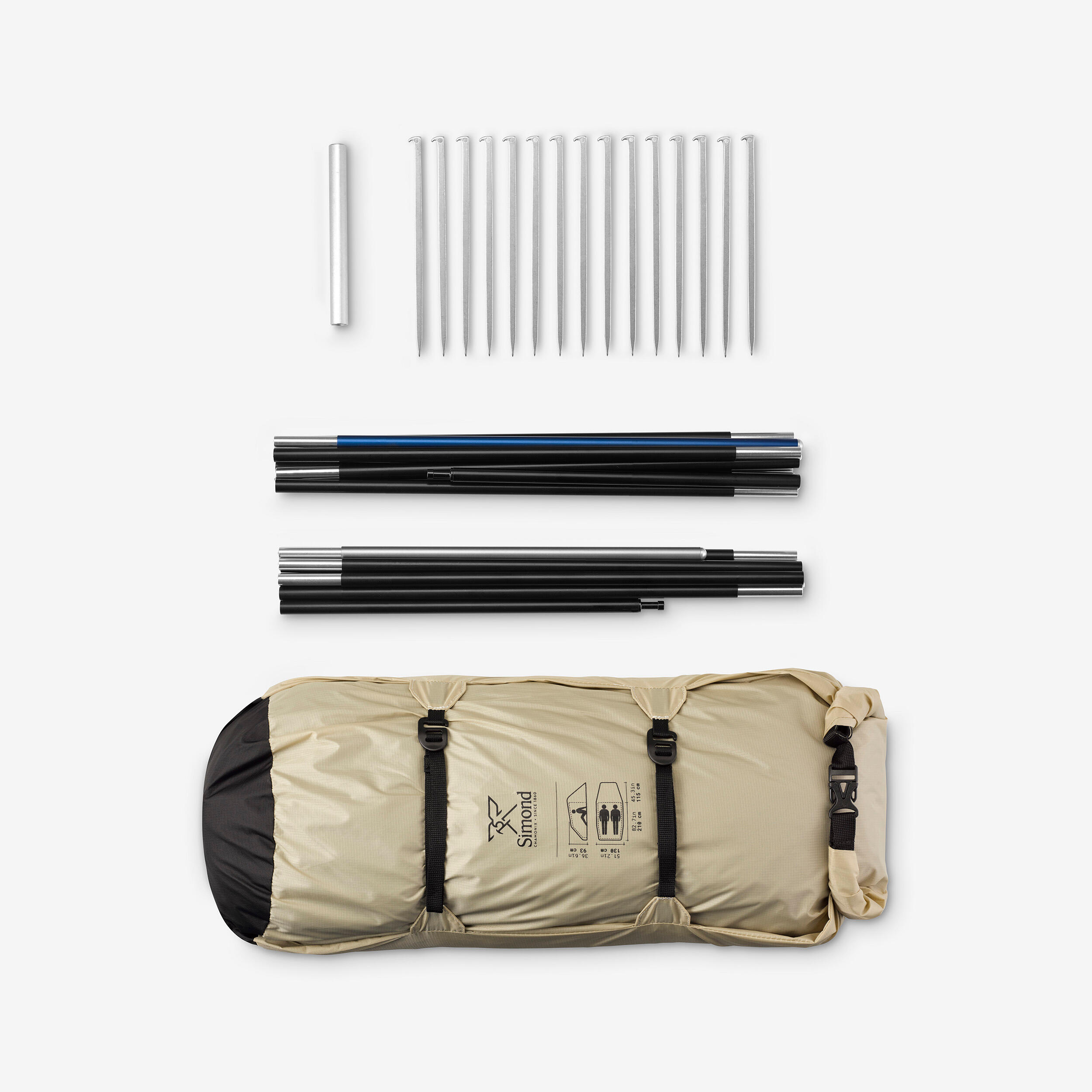 The waterproofing is validated in our laboratory, by placing the tent under a shower, which discharges 200 litres of water per sqm per hour, for three hours, i.e. the equivalent of a tropical rain shower.