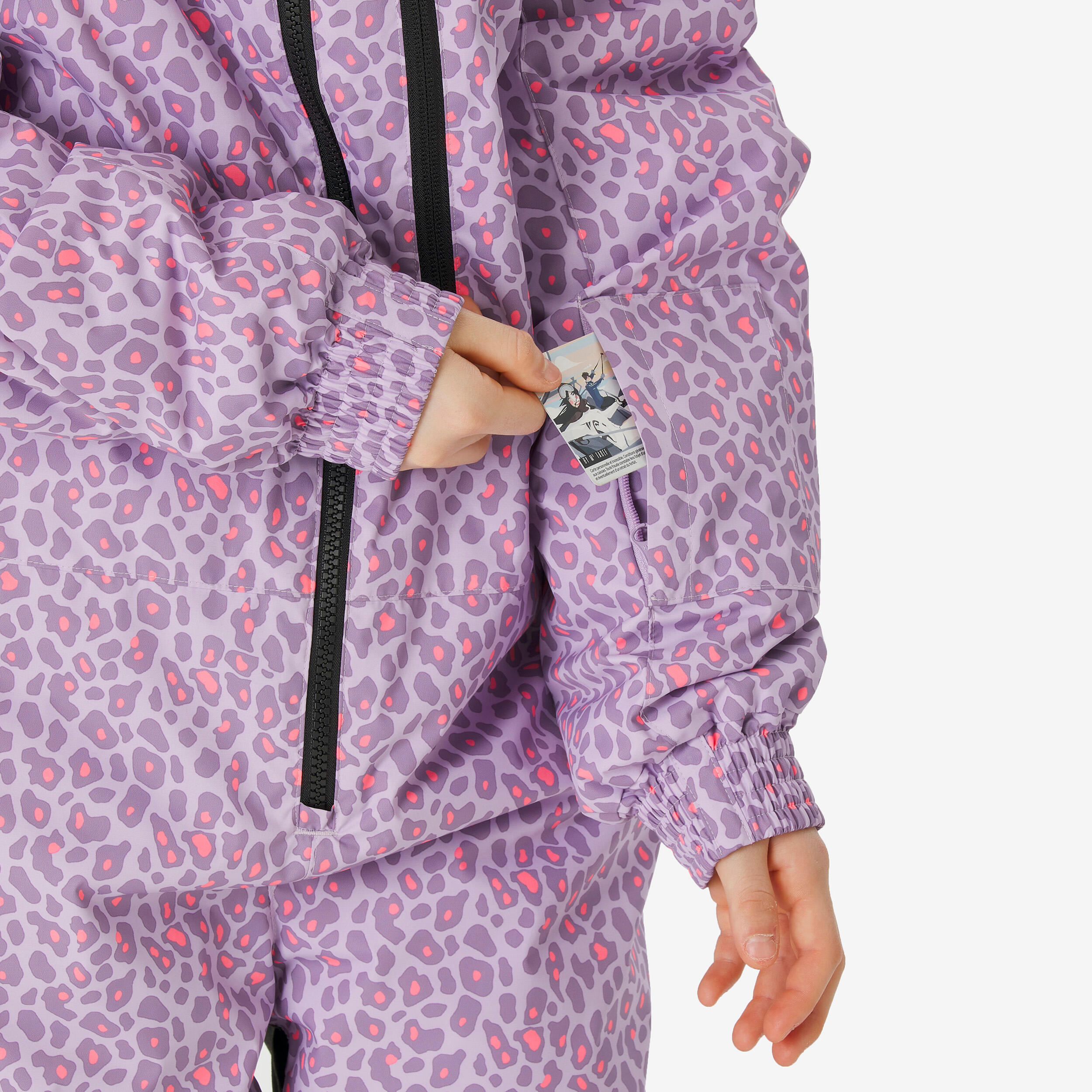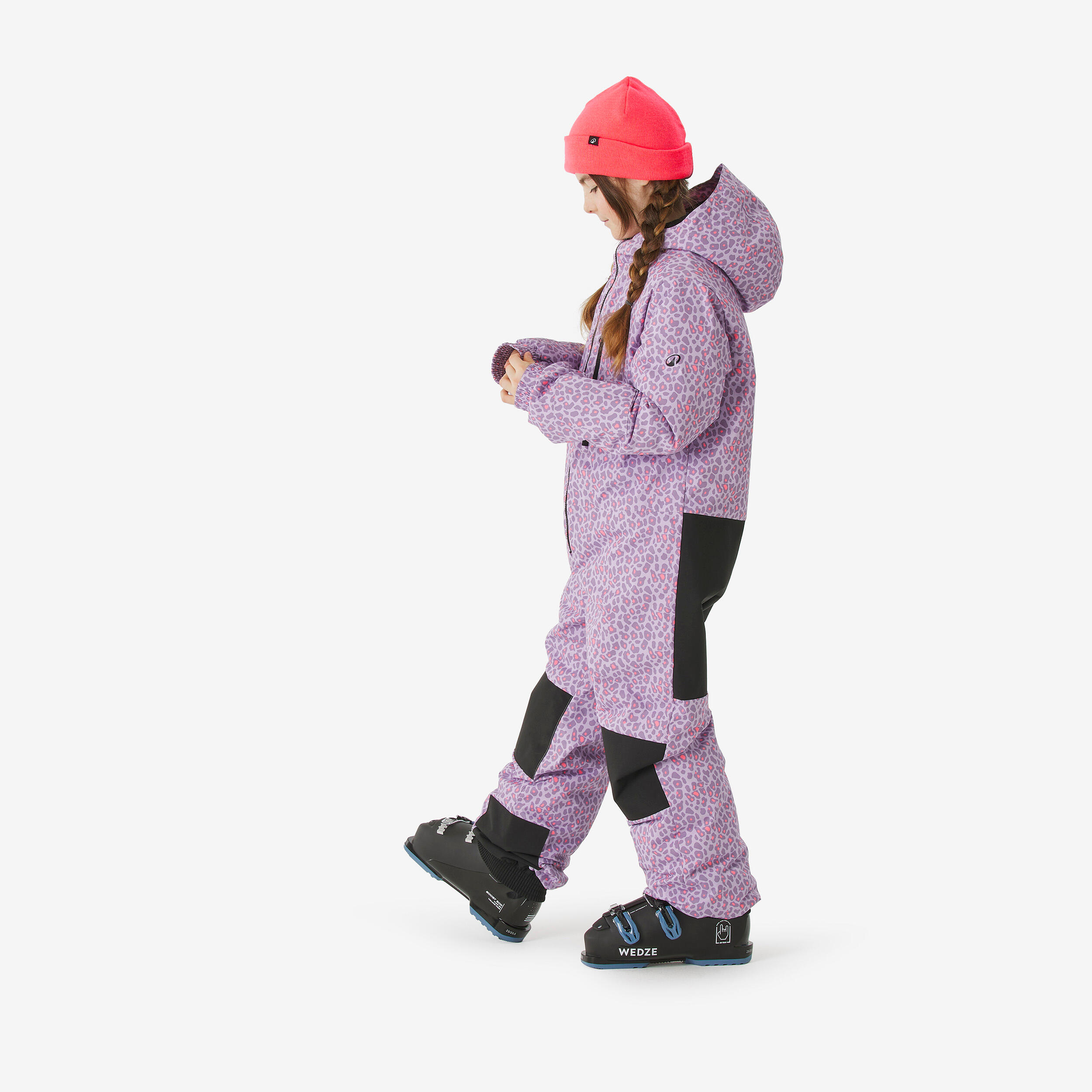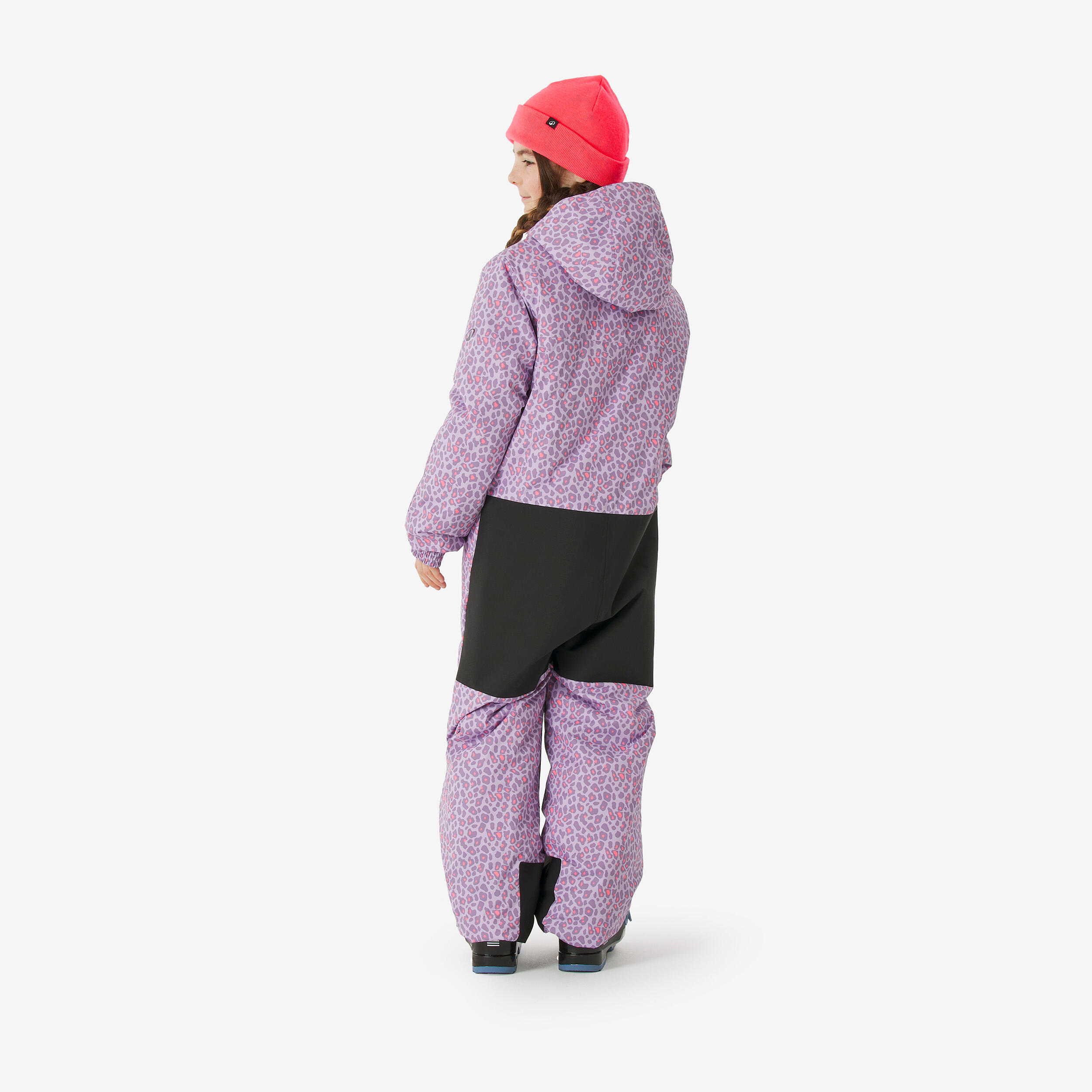 Kids’ warm ski suit, 5-13 years, SKI100 - Purple Leopard