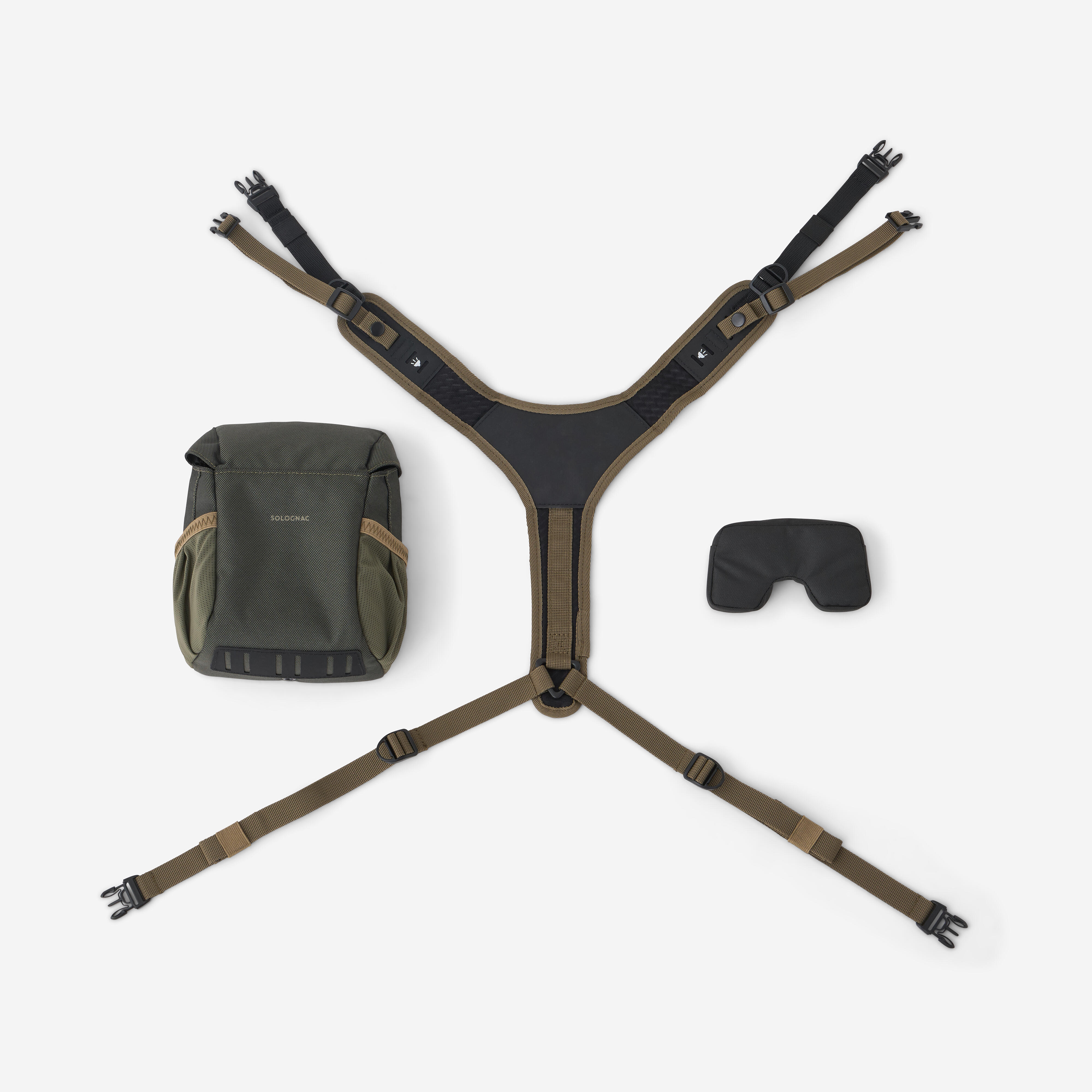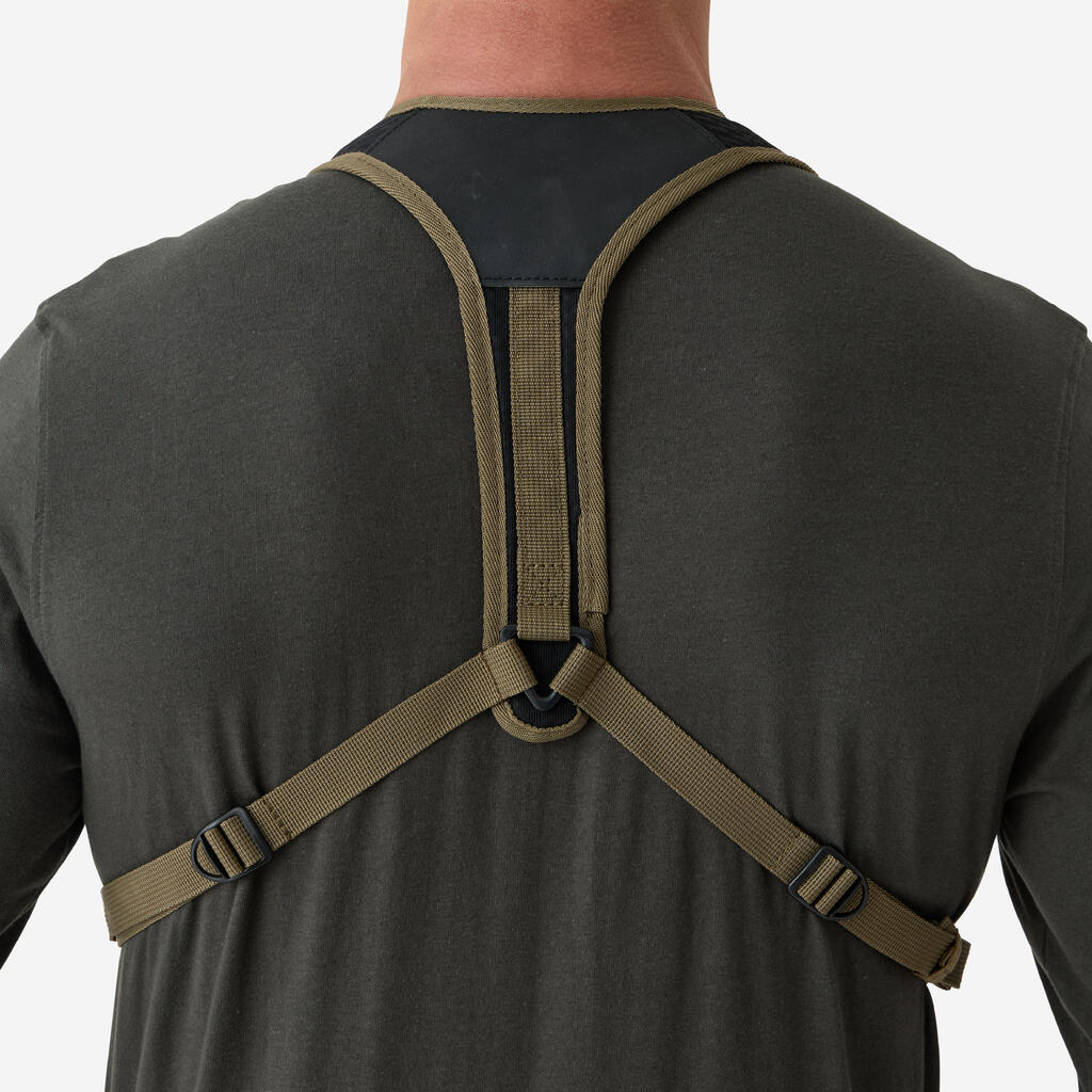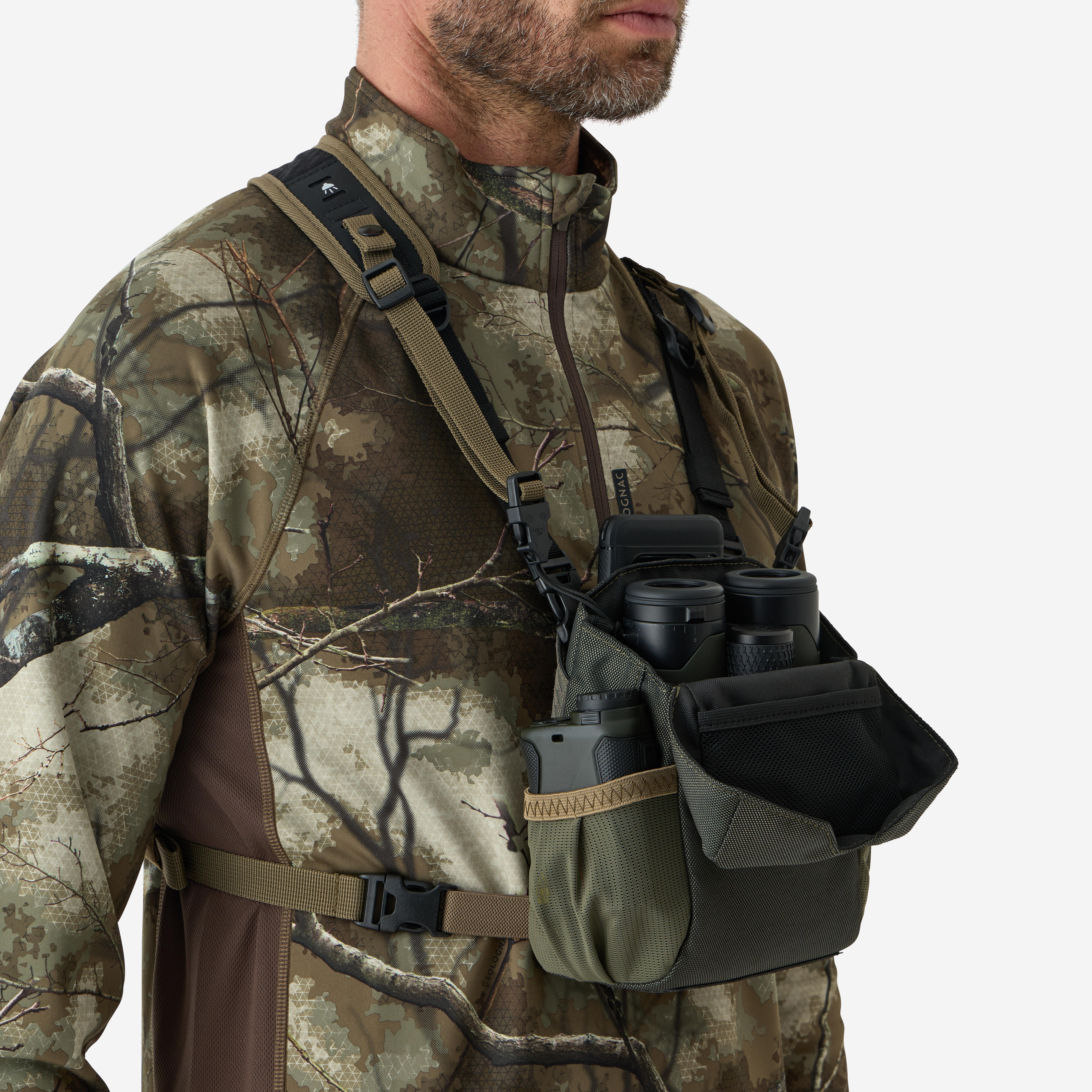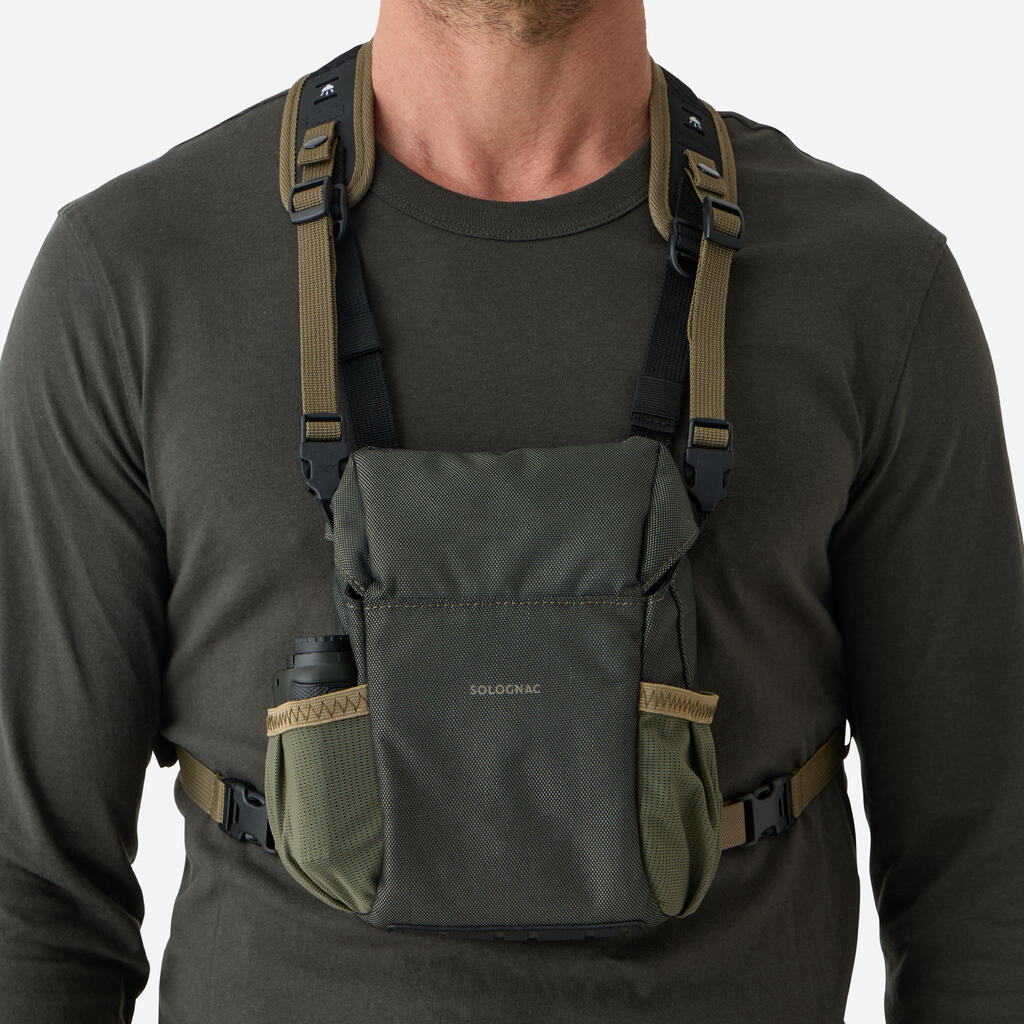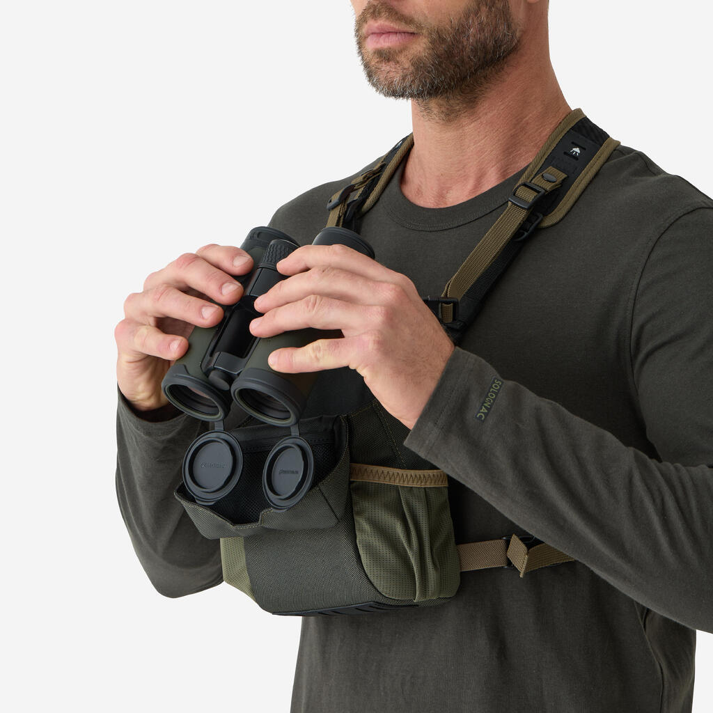 The harness pocket is designed to carry and secure your binoculars from 32 mm to 50 mm in diameter, as well as your various accessories (rangefinder, etc.).