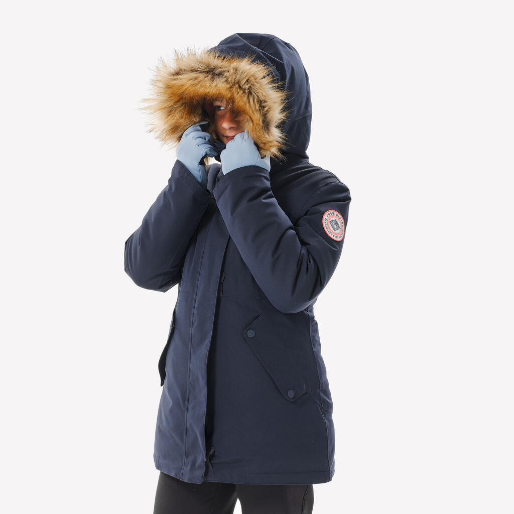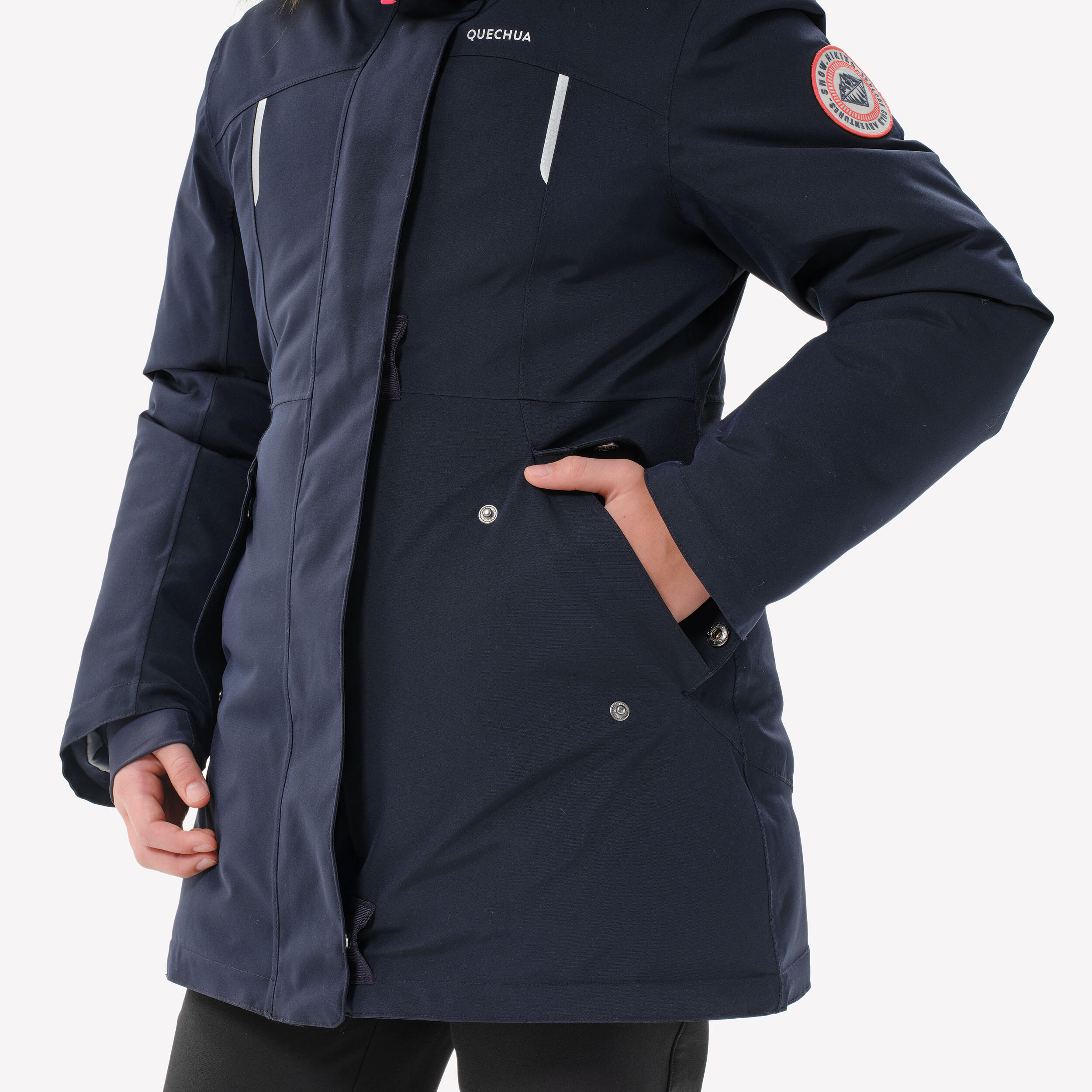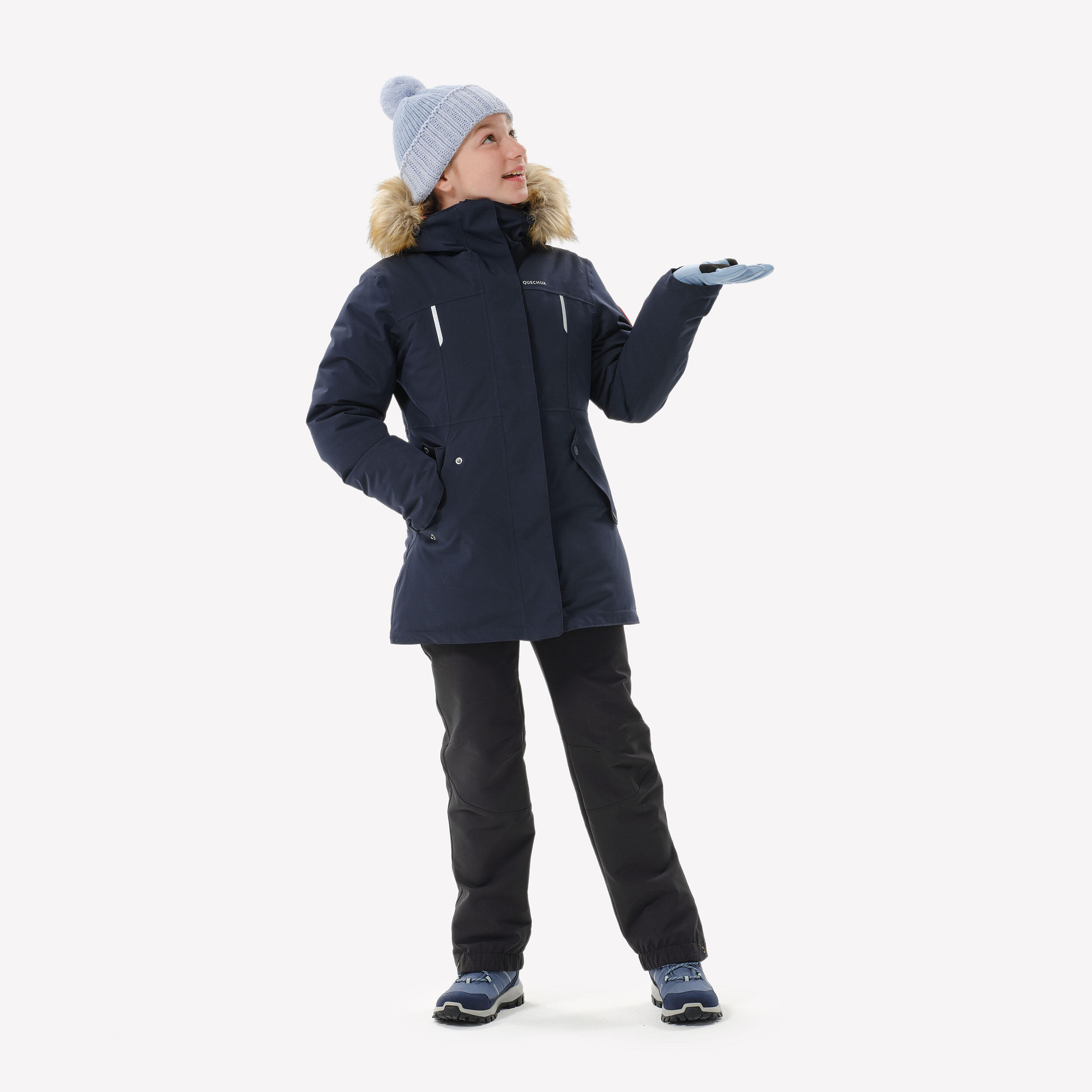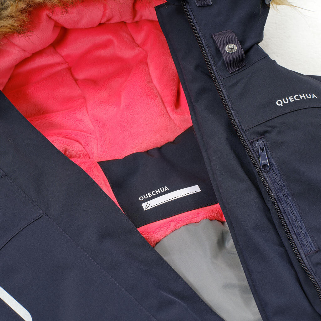 We developed your jacket for intense wintry conditions: cold, snow, blizzard. The heat comes from thick wadding (double layer on the body), a synthetic insulating component thanks to the air stored in its fibres. We added a wide quilted inner flap underneath the main zip to stop cold air from entering. According to our laboratory test, 70% of kids experience thermal comfort at -17°C.