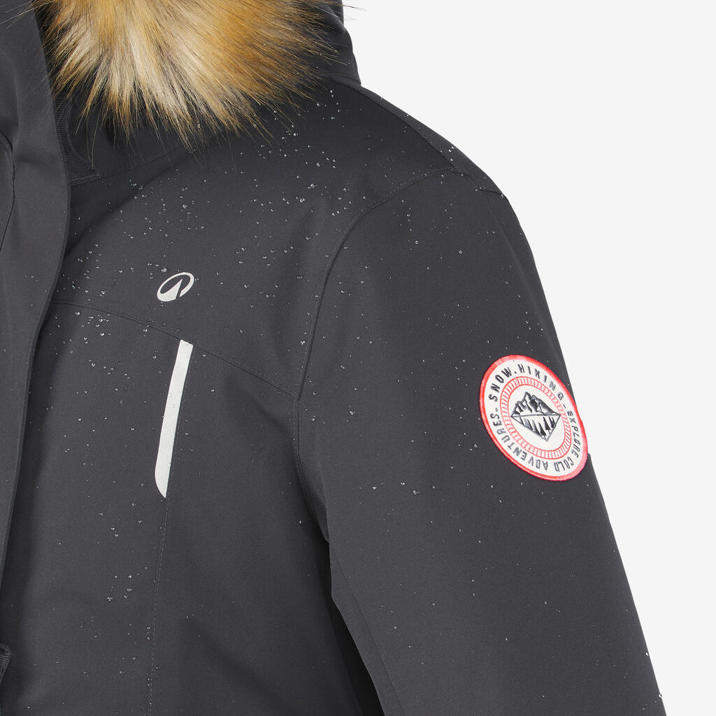 Practical and smart details: 2 outer pockets with flap, 1 secure inner pocket for storing your phone for example, 2 net inner pockets to store gloves, etc. The main fastening has a zip puller and the press studs have a thumb loop: kids will be able to undo and do up their jacket without removing their gloves, and the same goes for you.