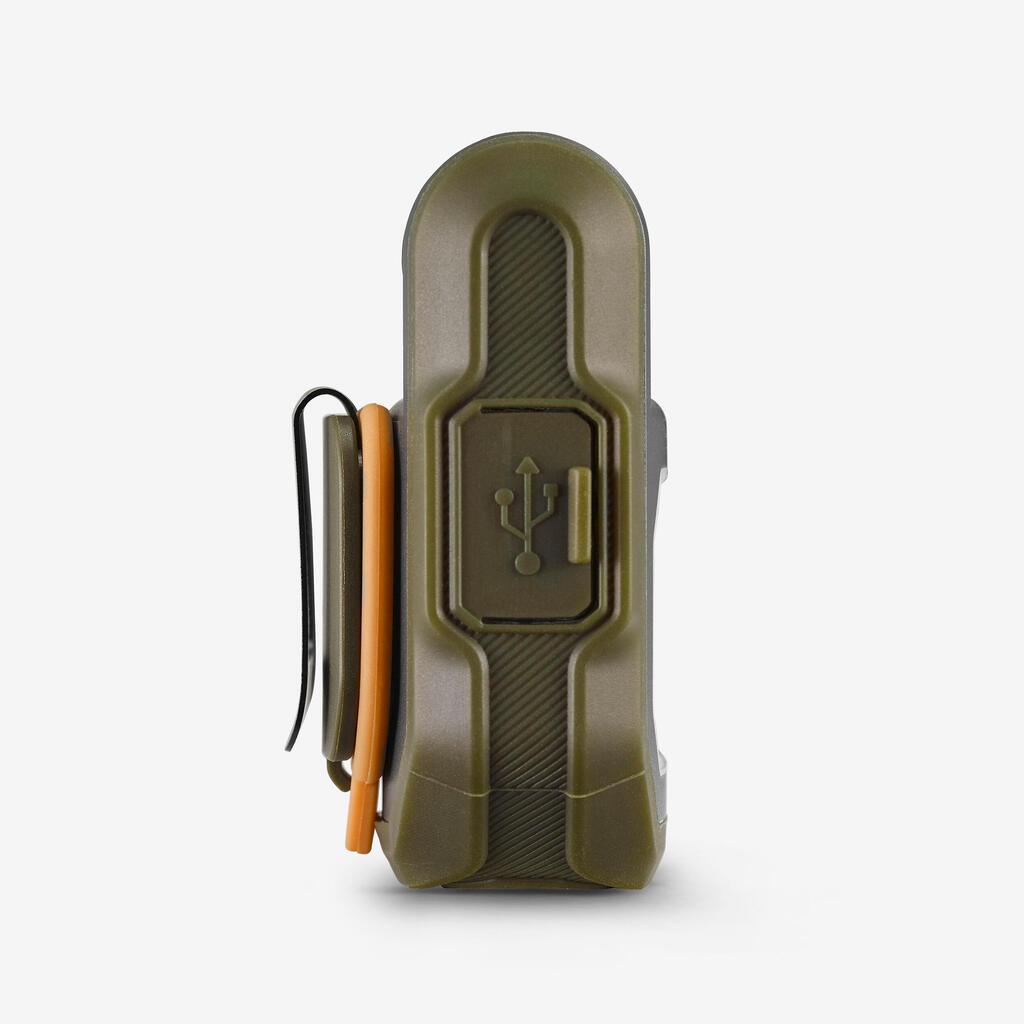 This headlamp uses a 750 mAh Lithium-ion battery that’s rechargeable via a USB-C cable (not supplied) and is compatible with external chargers and solar panels.