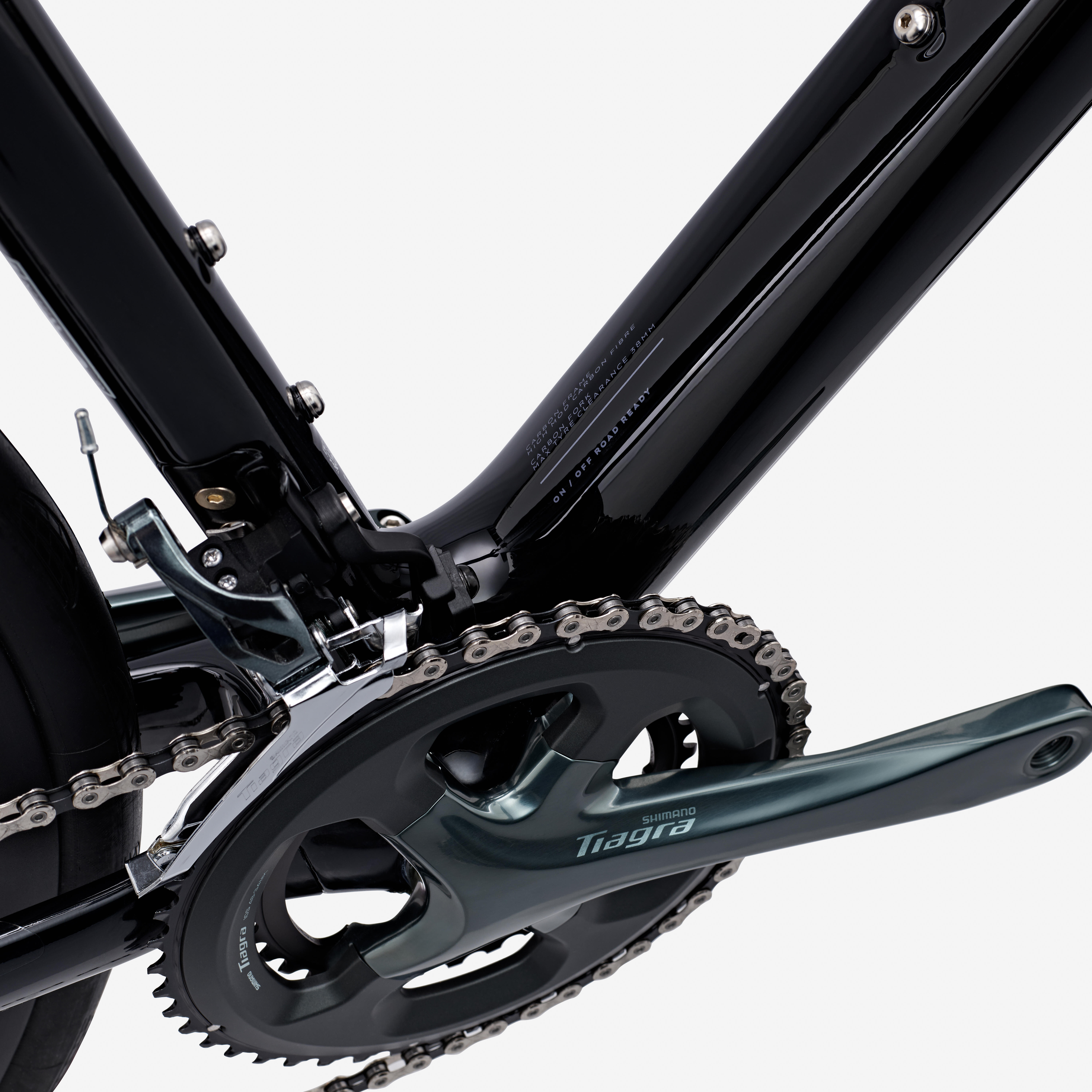The frame and fork clearance allows for tyres up to 38 mm