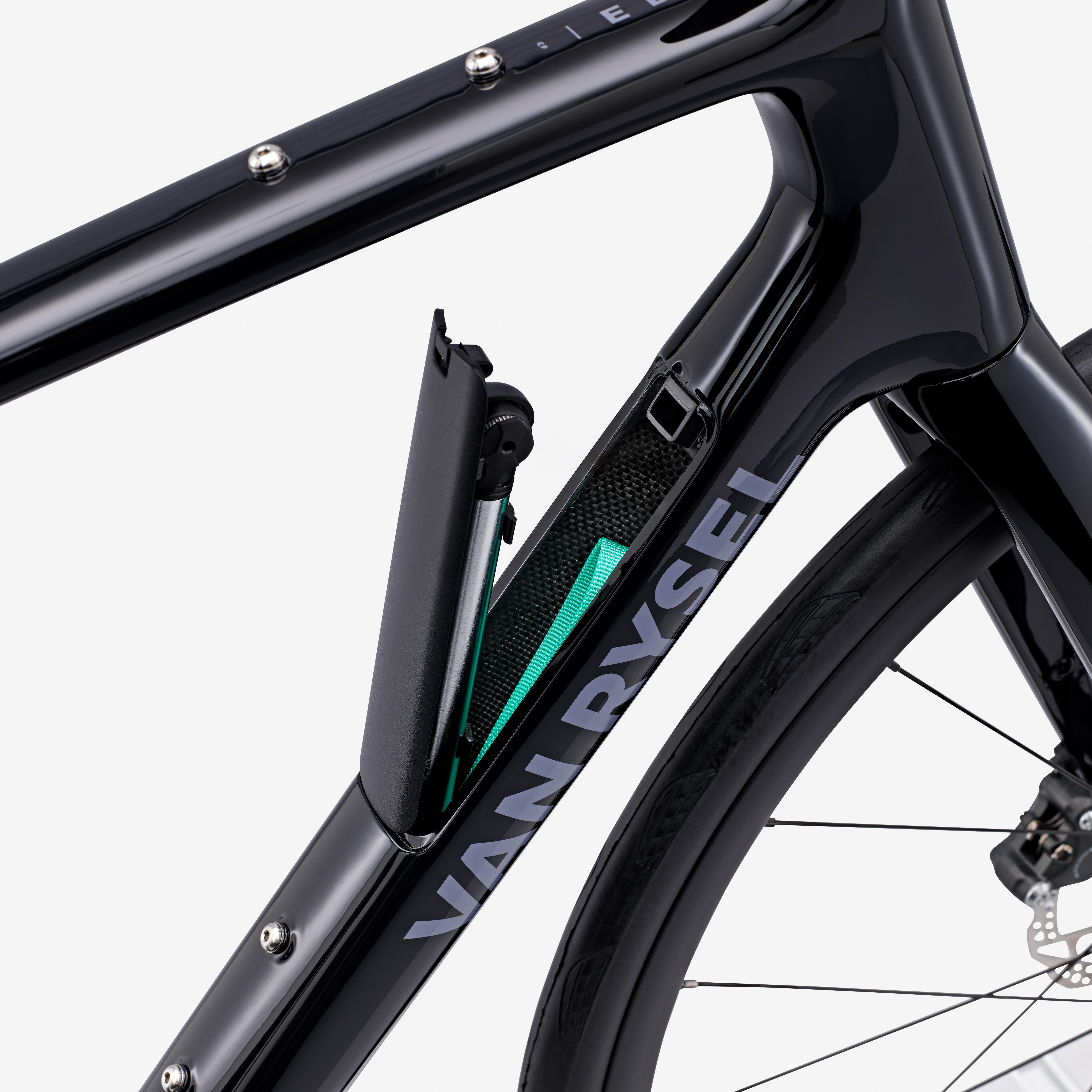 We have dedicated storage space in the down tube to accommodate an optimised repair kit, supplied with the bike.