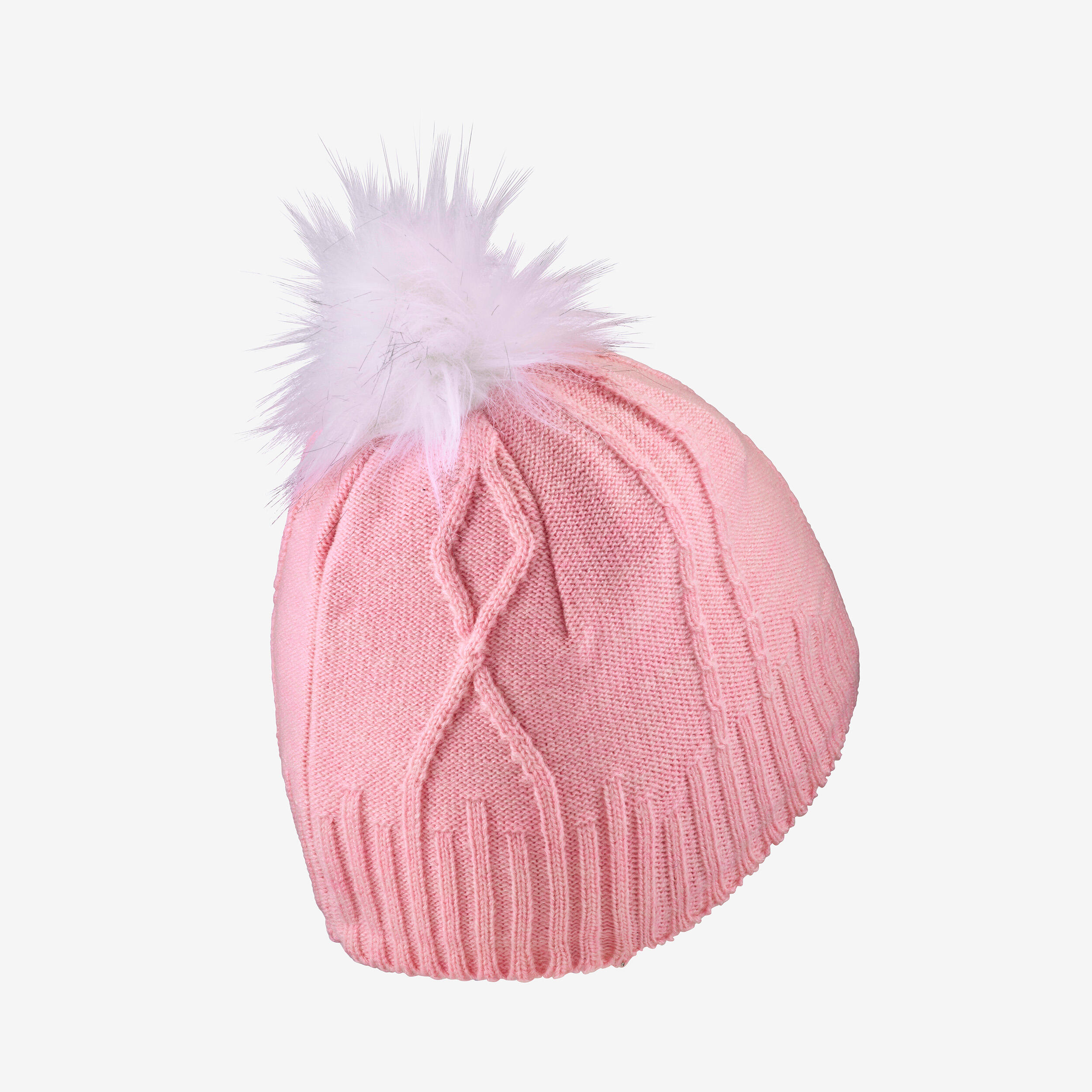 Kids’ Cable-knit Fur Wool Hat - Pink