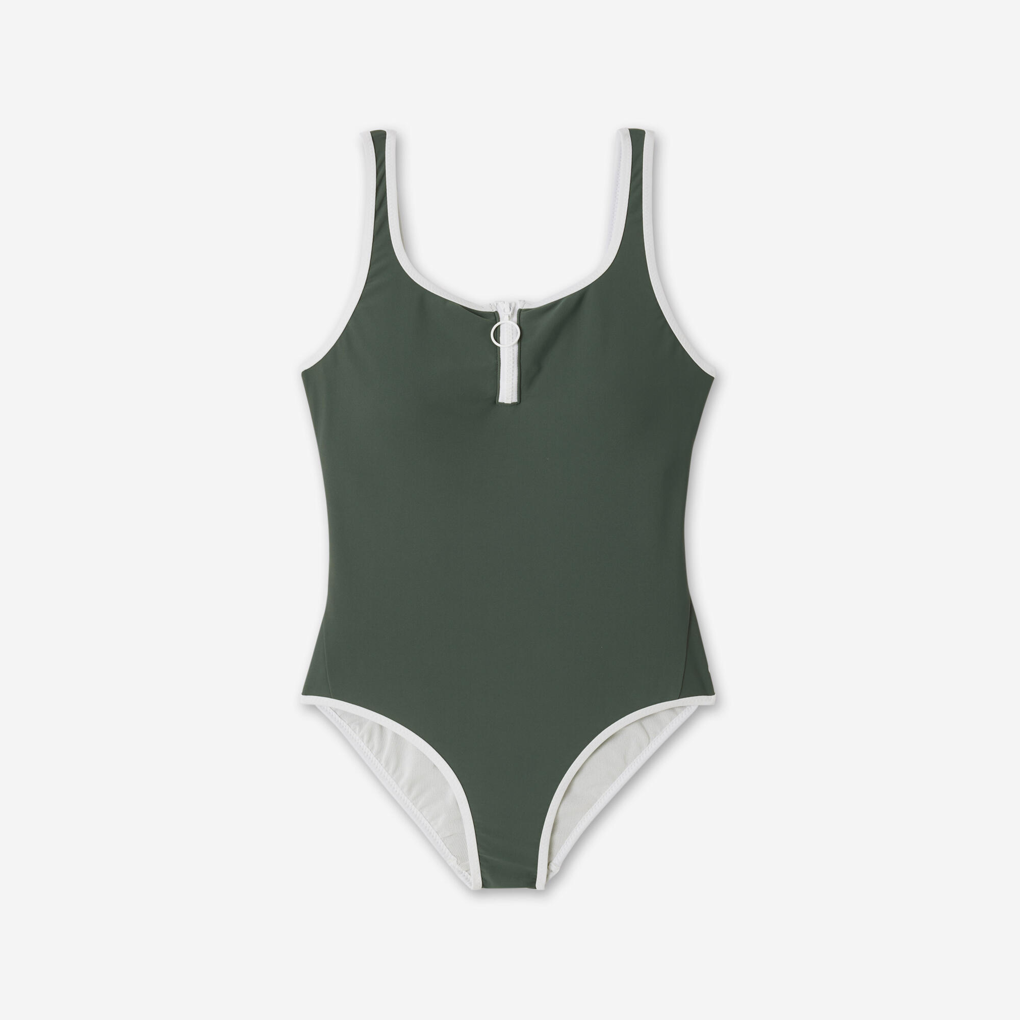 Women’s swimming 1-piece swimsuit - Heva Joy zip khaki