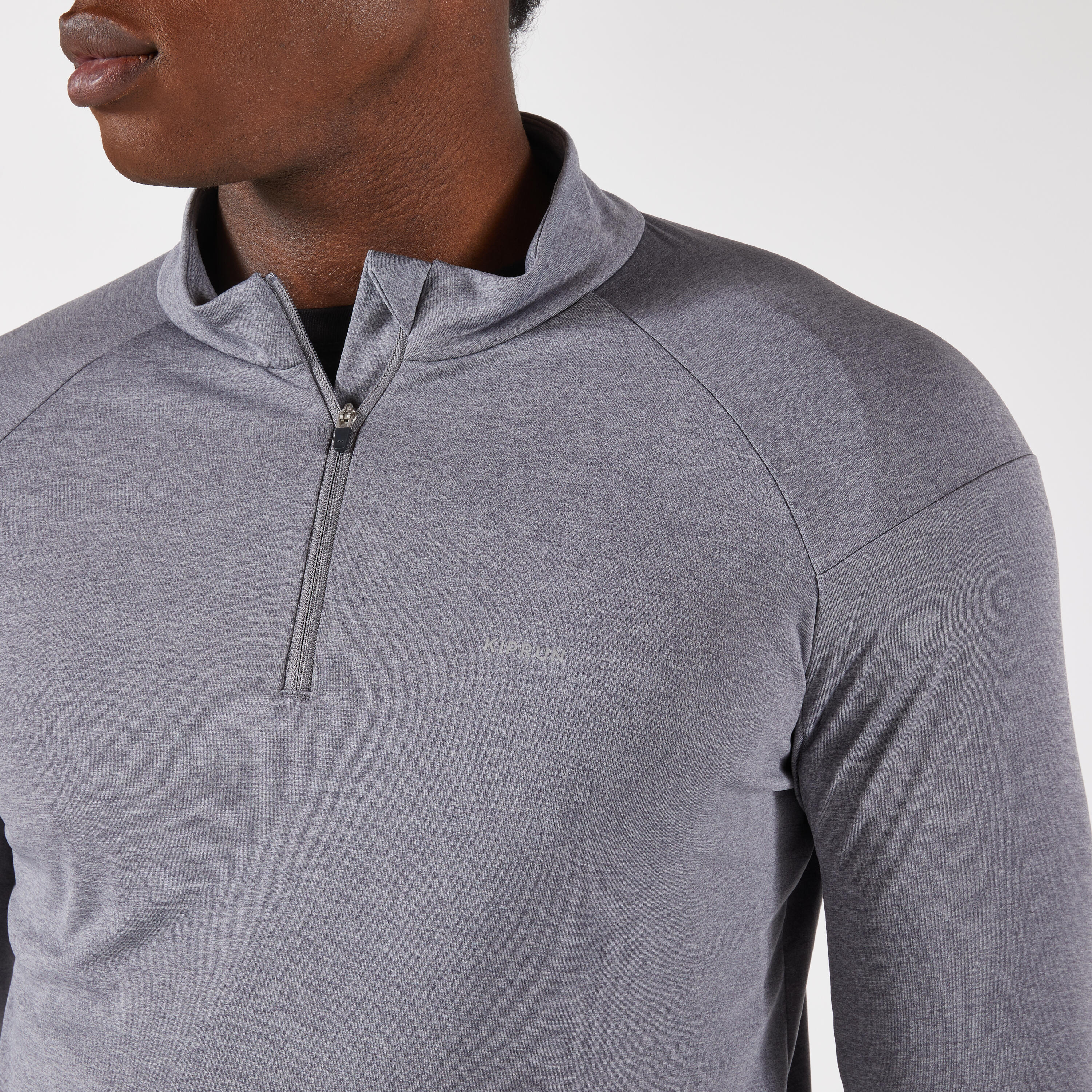 Kiprun Run 100 Men's Warm and Breathable Half-Zip Long-Sleeved T-shirt - Grey