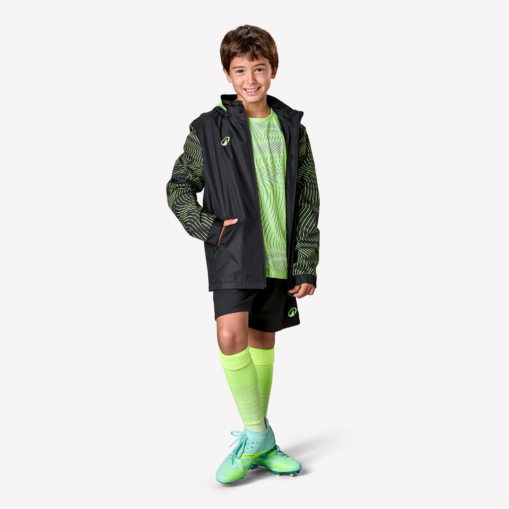 By observing young footballers on the football pitch, in the rain and wind, we designed this VIRALTO JR rain jacket for training or warm-ups. We wanted this VIRALTO JR children's rain jacket to be above all waterproof and hard-wearing, while at the same time having a design perfectly suited to football. The ventilated interior mesh lining provides good ventilation. You'll love the two side zip pockets.