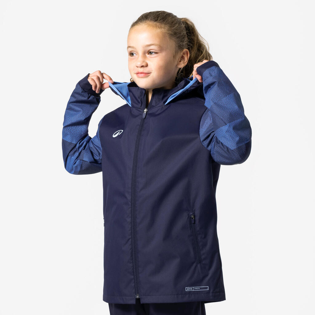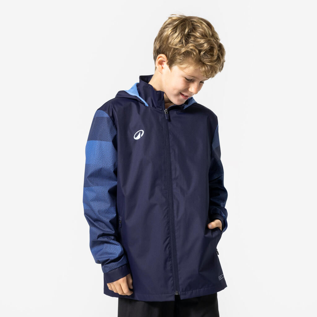 The hood is an essential part of the young footballer's rain jacket, it must protect them without getting in the way. For your child's safety, the hood on this jacket has no cords. An elasticated section holds it in place while allowing the head to move freely with good side vision.