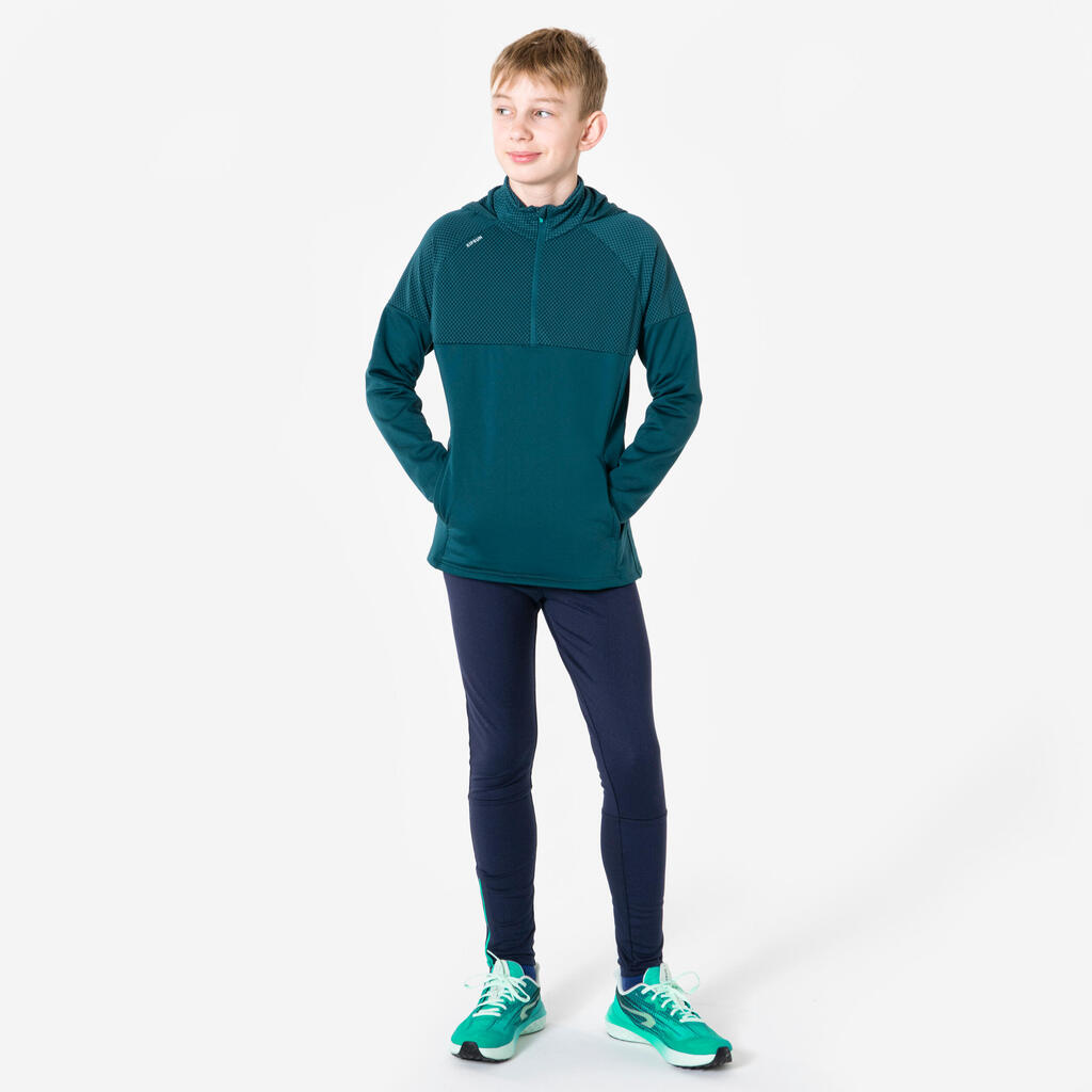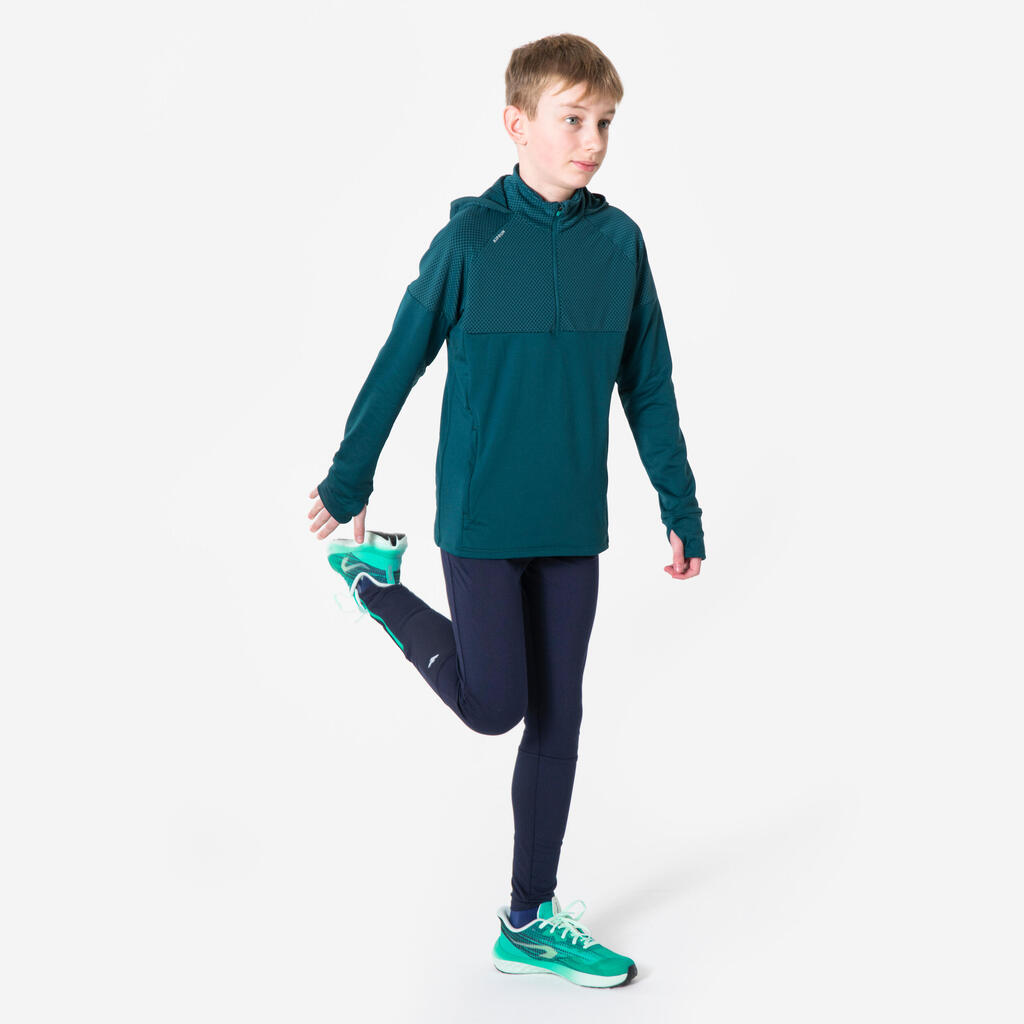 Boys' Technical Running Tights Kiprun 900 Stretch Blue Green