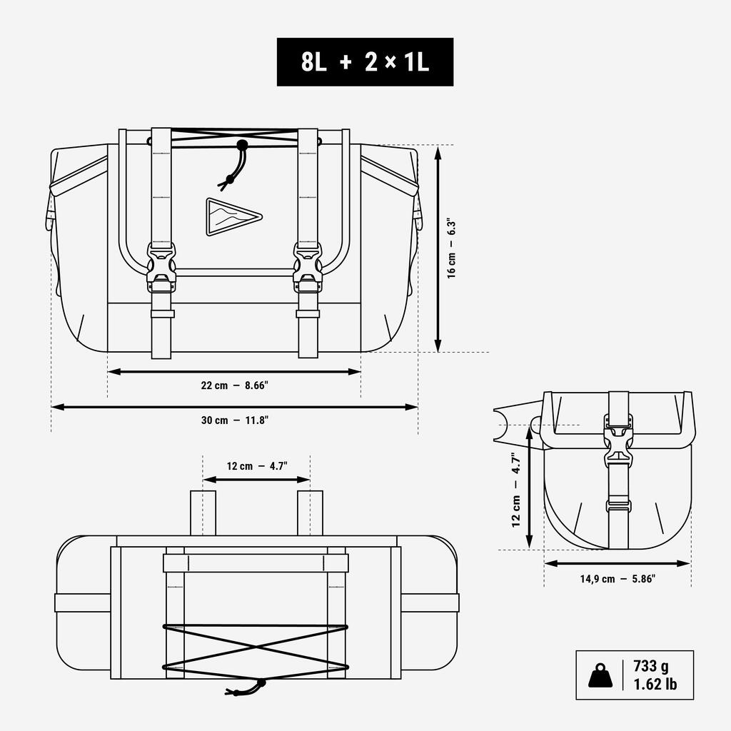 Great stability ensured by three attachment pointsOn the handlebar:two aluminium hooks with a locking mechanism to prevent them from coming loose.