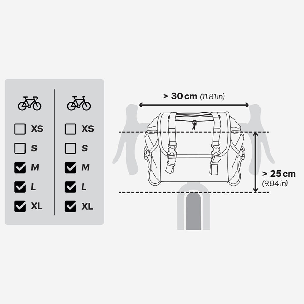 Important: Check the dimensions on the product spec sheet to make sure it's compatible with your bike:Minimum distance between the handlebar and the wheel: 25 cm