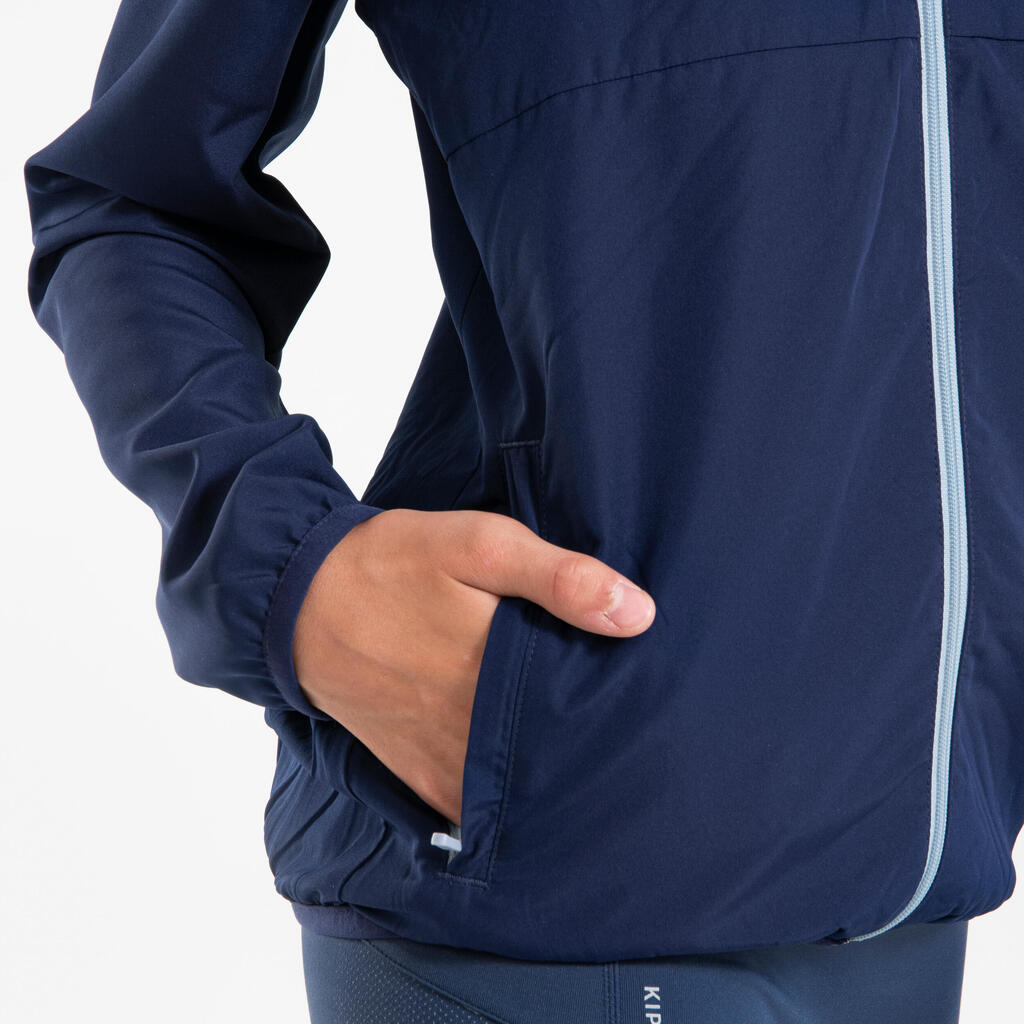 KIDS' WINDPROOF RUNNING JACKET - KIPRUN WIND - NAVY BLUE GREY