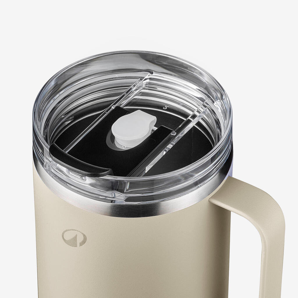 1 L insulated mug with straw in stainless steel, for hiking and camping - Beige